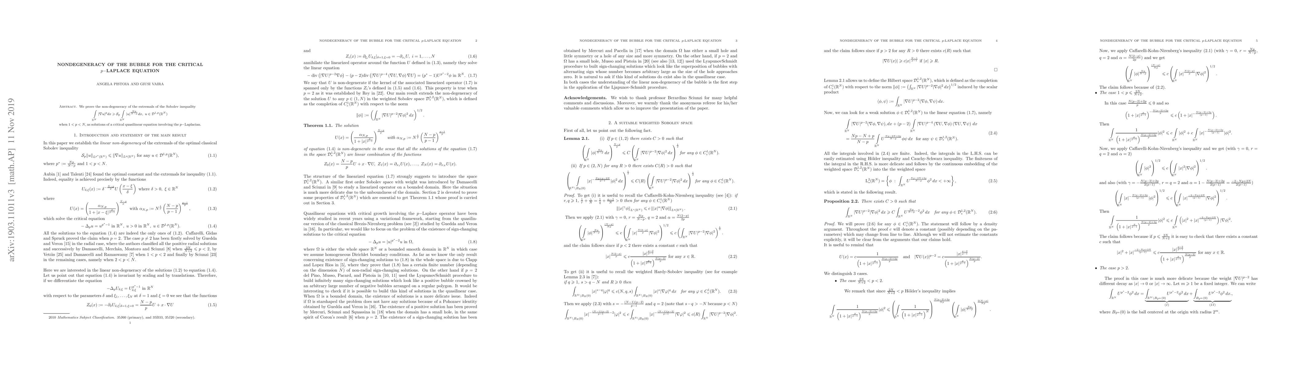 Researchers prove that solutions to a critical p-Laplace equation are non-degenerate when 1<p<N, meaning they have no singular points where the gradient vanishes.