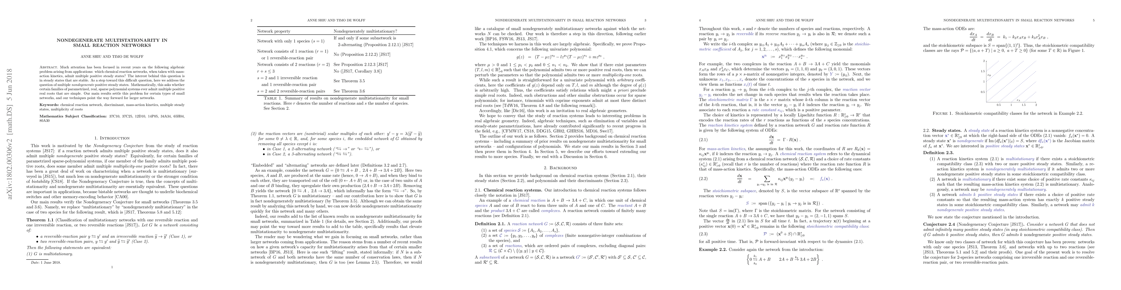 Researchers investigated small chemical reaction networks for multiple stable positive steady states, finding a solution for certain types of networks that could aid in understanding applications such as biochemical systems.