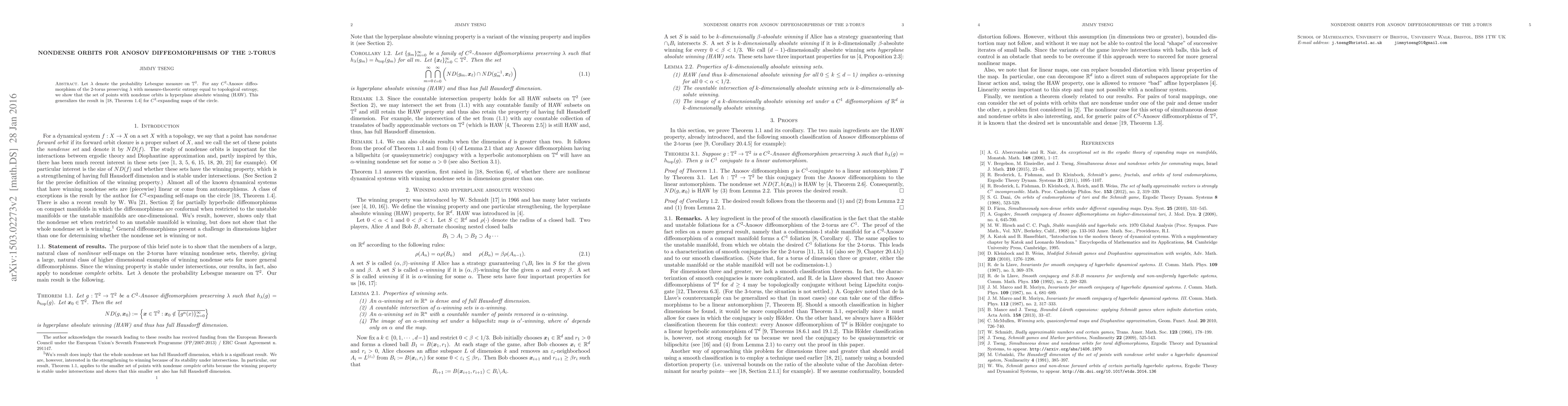 Let $\lambda$ denote the probability Lebesgue measure on ${\mathbb T}^2$. For any $C^2$-Anosov diffeomorphism of the $2$-torus preserving $\lambda$ with measure-theoretic entropy equal to topological entropy, we show that the set of points with nondense orbits is hyperplane absolute winning (HAW). This generalizes the result in~\cite[Theorem~1.4]{T4} for $C^2$-expanding maps of the circle.