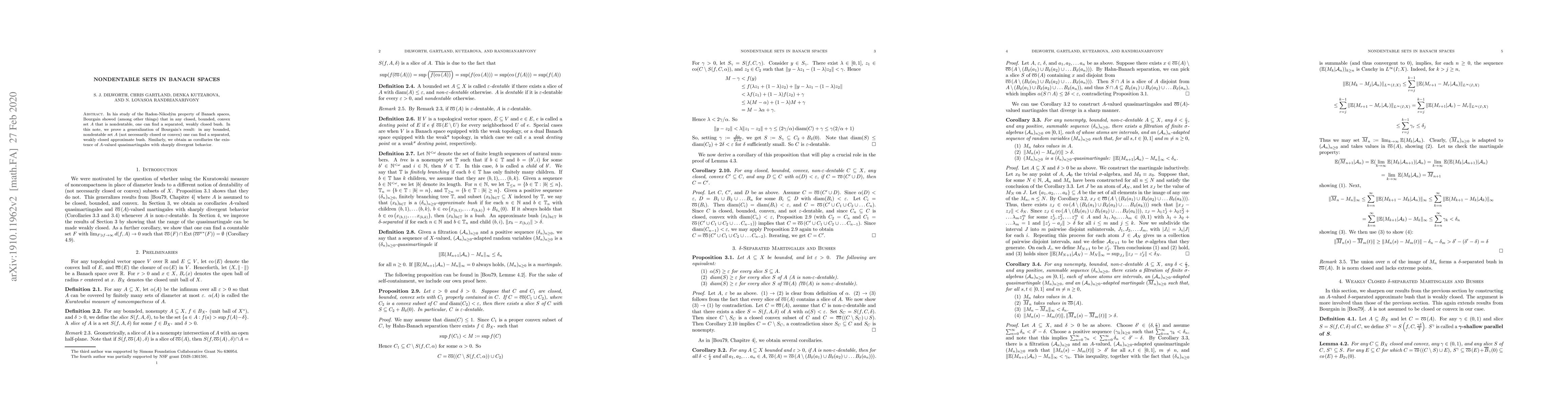 Researchers generalize Bourgain's result on nondentable sets in Banach spaces to find a separated, weakly closed approximate bush, with implications for quasimartingales and behavior.
