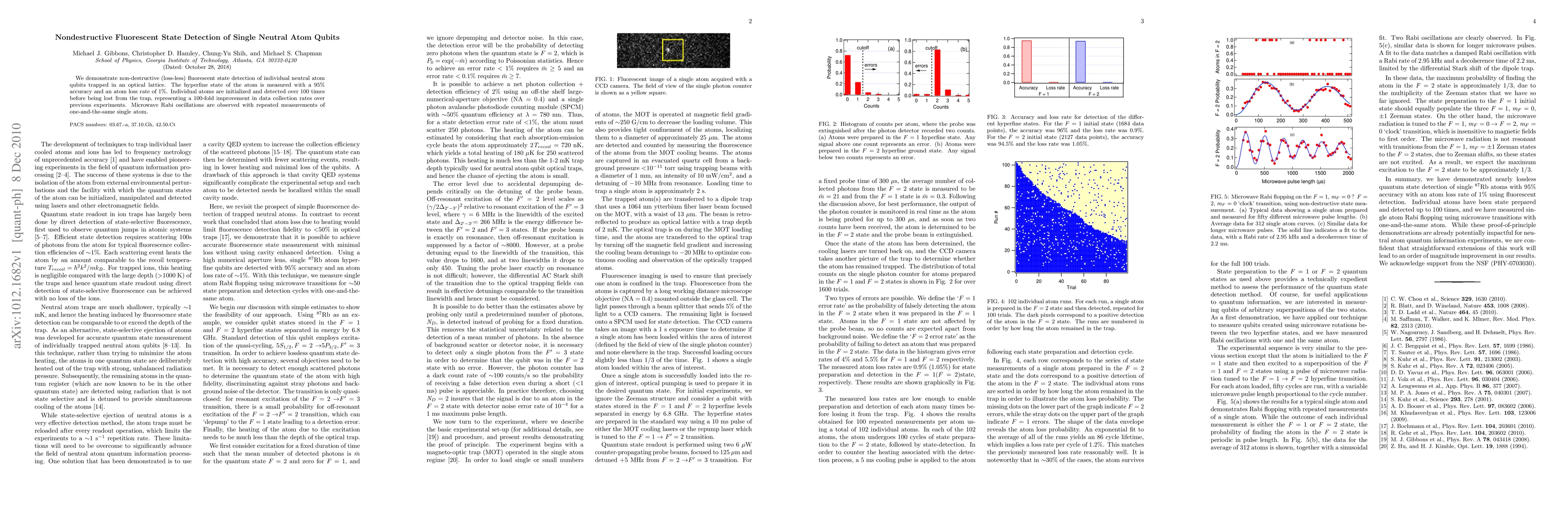 This paper presents a method for non-destructive fluorescent state detection of single neutral atom qubits in an optical lattice, achieving 95% accuracy and a 1% atom loss rate. This technique allows for repeated measurements of the same atom, significantly improving data collection rates by 100 times compared to previous experiments.