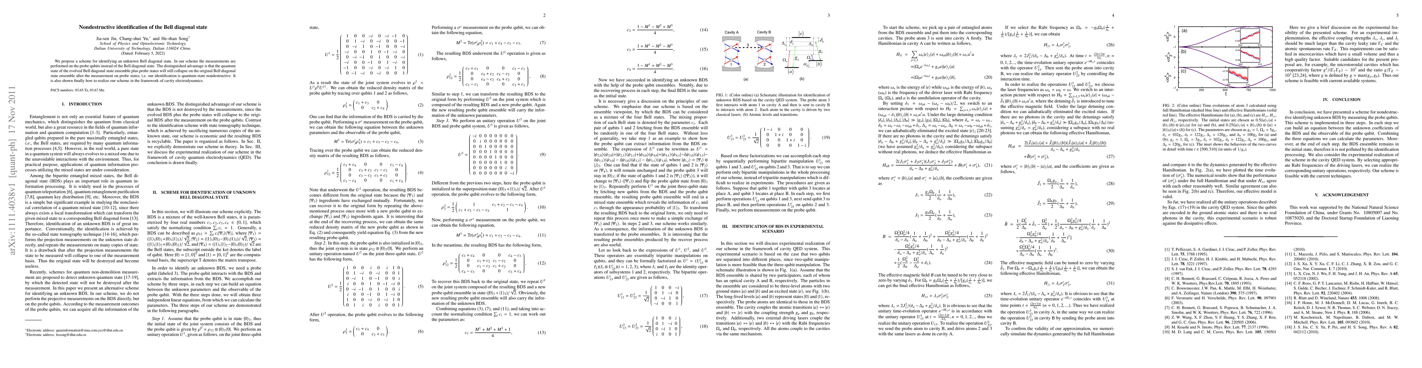 This paper proposes a nondestructive scheme for identifying unknown Bell diagonal states using probe qubits, ensuring that the original quantum state remains unchanged after measurement, and demonstrates its feasibility within cavity electrodynamics.