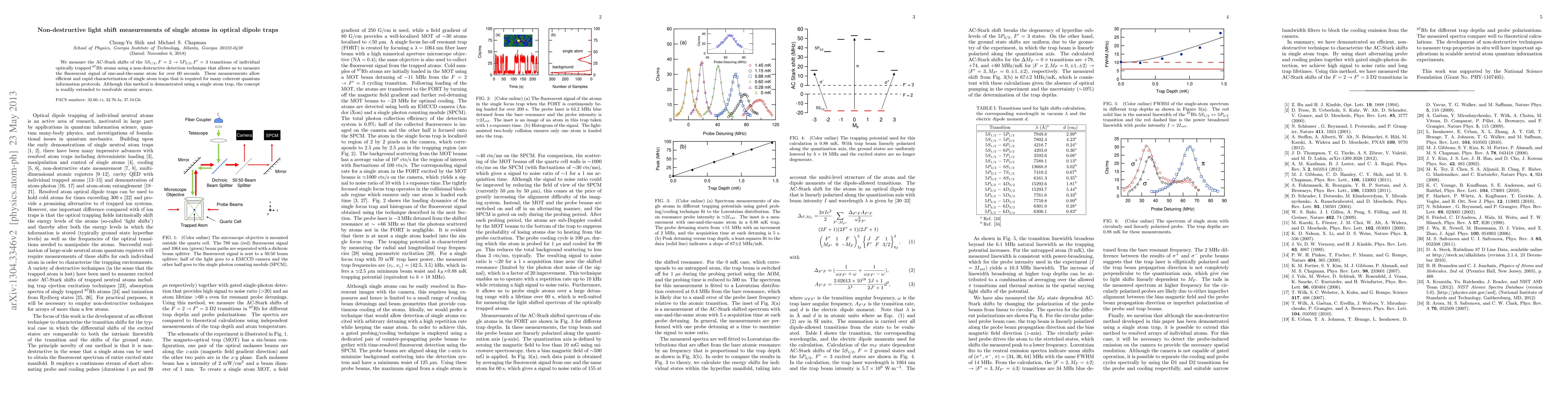 Development of a non-destructive method for measuring AC-Stark shifts in single atom traps using gated probing and time-resolved single-photon detection.