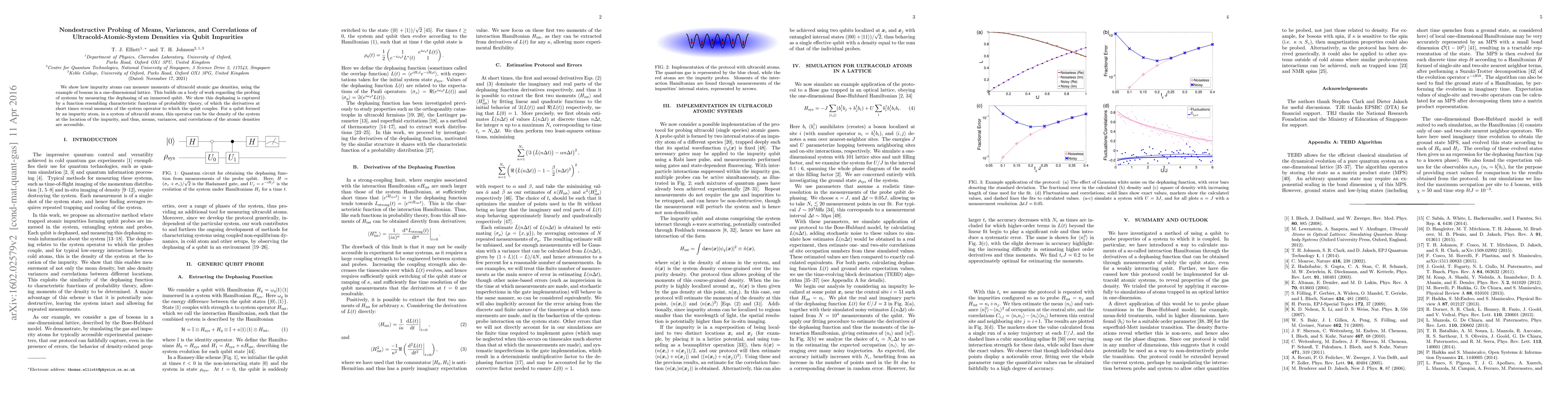 Researchers show how impurity atoms can measure moments of ultracold atomic gas densities using a qubit impurity method. This allows for the nondestructive probing of means, variances, and correlations of atomic densities in a one-dimensional lattice.