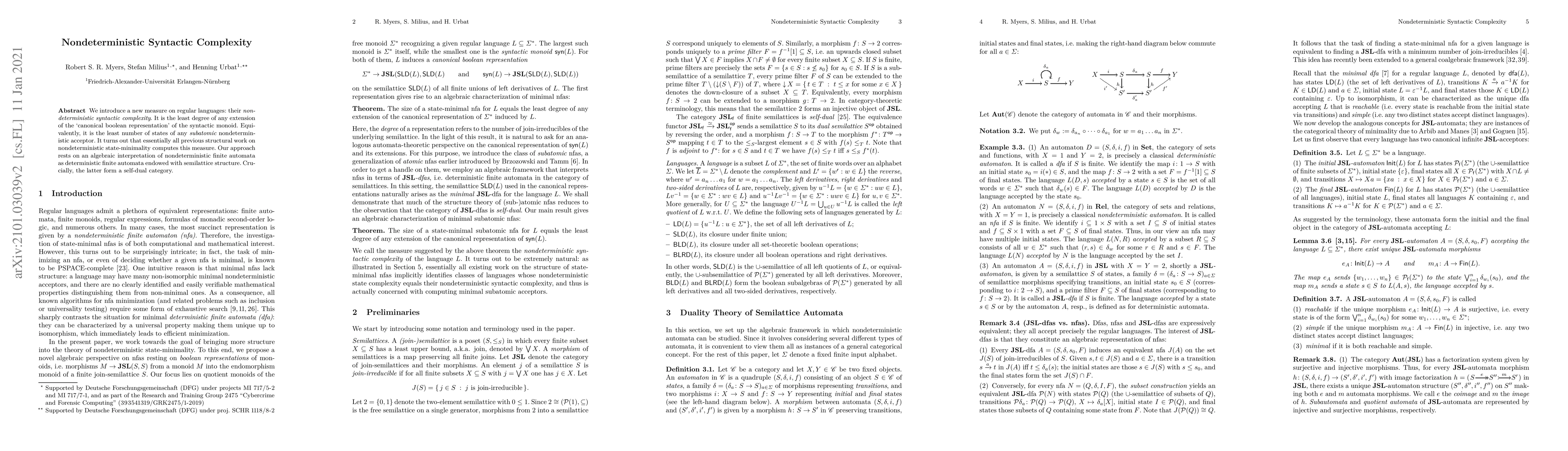 This paper introduces a new measure called nondeterministic syntactic complexity for regular languages, defined as the minimum number of states in any subatomic nondeterministic acceptor. It reveals that much prior work on state-minimality actually computes this measure, and it leverages an algebraic interpretation of nondeterministic finite automata as deterministic finite automata with semilattice structure, which forms a self-dual category.