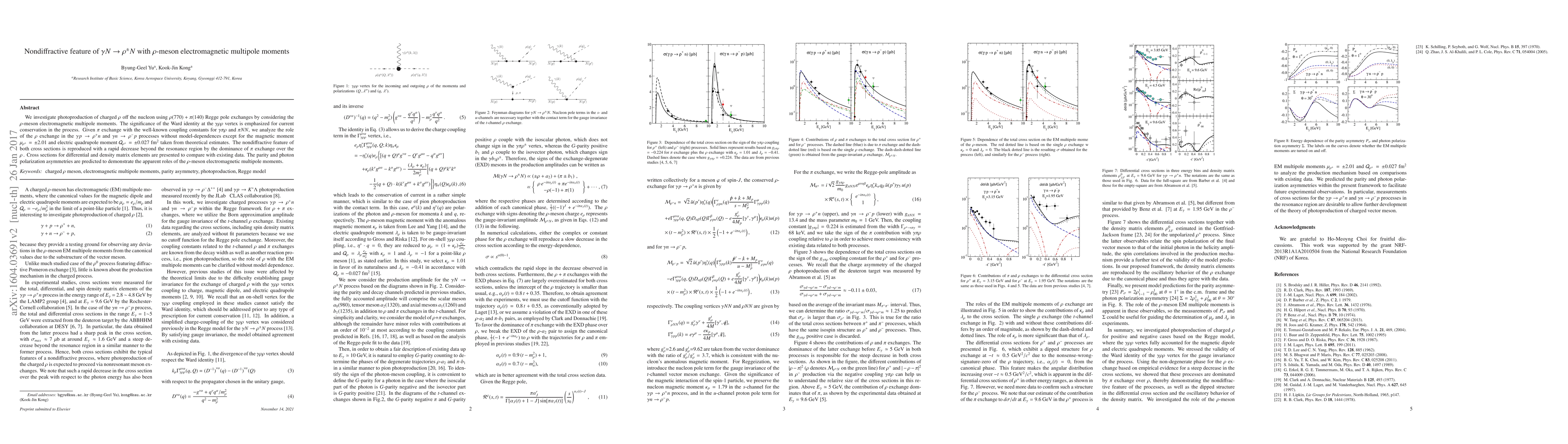 This paper investigates the photoproduction of charged $\rho$ mesons off nucleons, emphasizing the role of $\rho$-meson electromagnetic multipole moments and the Ward identity for current conservation. It predicts nondiffractive cross sections dominated by $\pi$ exchange, with comparisons to existing data and predictions for parity and photon polarization asymmetries.
