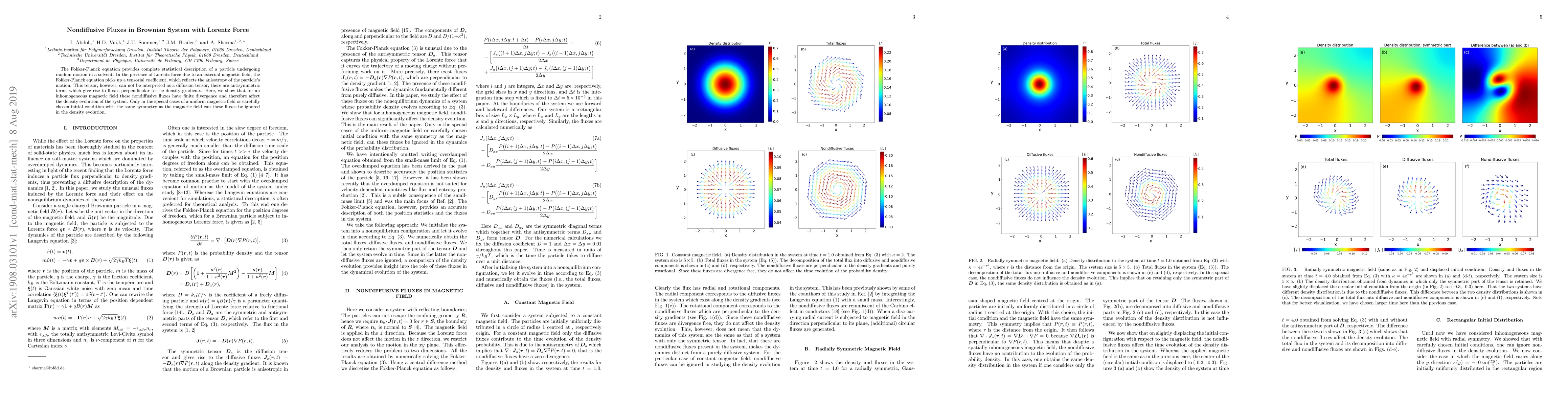 The Fokker-Planck equation provides complete statistical description of a particle undergoing random motion in a solvent. In the presence of Lorentz force due to an external magnetic field, the Fokker-Planck equation picks up a tensorial coefficient, which reflects the anisotropy of the particle's motion. This tensor, however, can not be interpreted as a diffusion tensor; there are antisymmetric terms which give rise to fluxes perpendicular to the density gradients. Here, we show that for an inhomogeneous magnetic field these nondiffusive fluxes have finite divergence and therefore affect the density evolution of the system. Only in the special cases of a uniform magnetic field or carefully chosen initial condition with the same symmetry as the magnetic field can these fluxes be ignored in the density evolution.