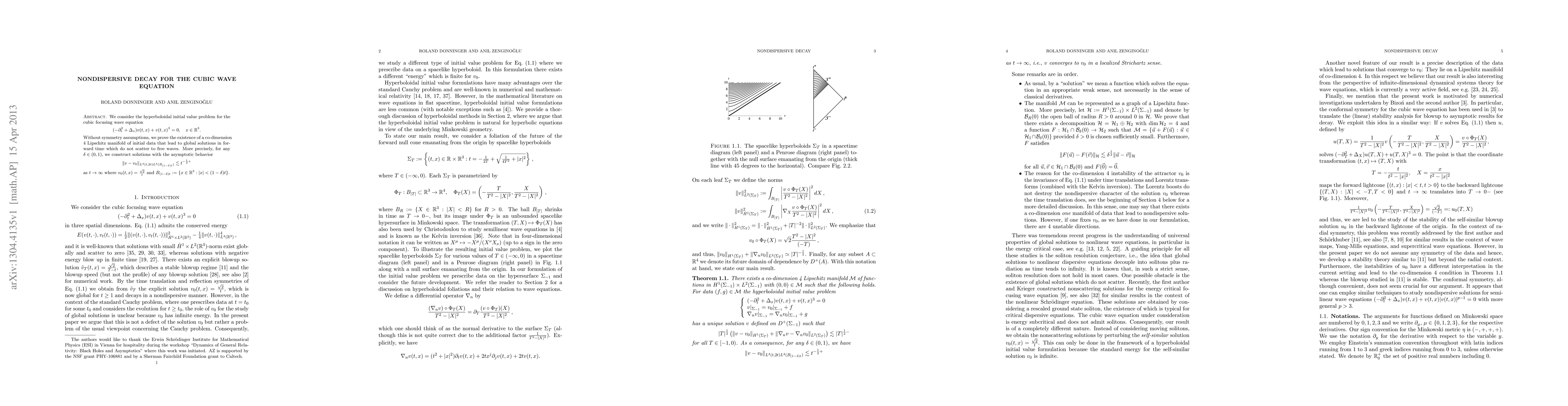 This paper proves the existence of a specific set of initial data for the cubic wave equation that leads to global solutions without scattering into free waves. It breaks new ground in understanding the behavior of focusing waves without relying on symmetry assumptions.