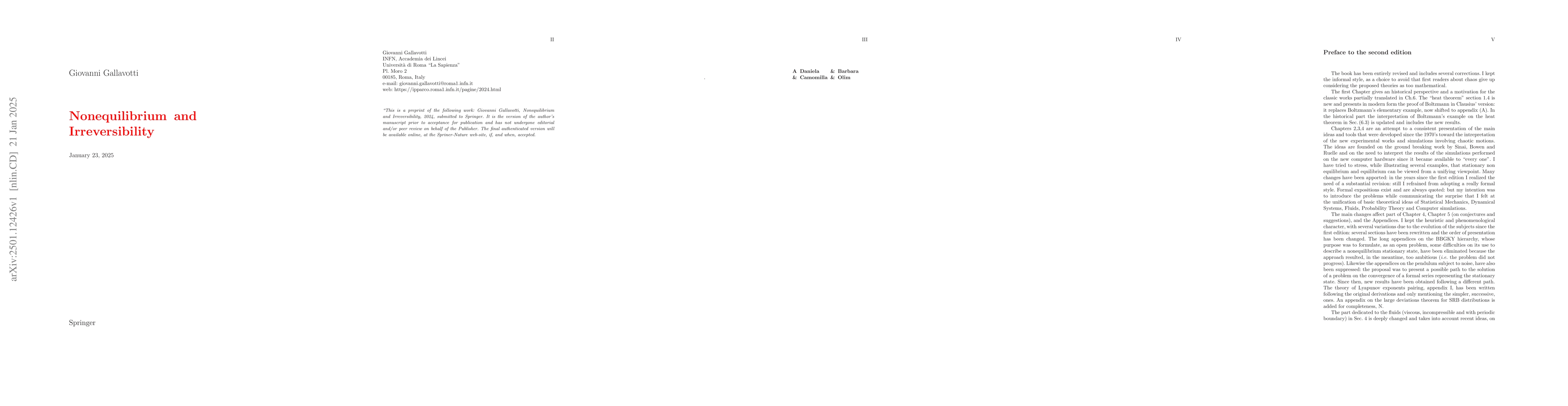 The work concentrates on relations, which are general and model independent in chaotic system, between time averages of a few (typically {\it very few}) observables. Equilibrium thermodynamics provides a guide and here is attempted to argue that the viewpoint of Sinai-Ruelle-Bowen can be regarded as a generalization to nonequilibrum phenomena of the theory of the ensembles proposing an answer to classical question like which distributions describe the statistics of stationary states (hence extend the analysis selecting canonical, or equivalent distributions, equilibrim between the uncountably many possibilities). The special name "Chaothic Hypothesis" (CH) is given to the above attempt and its mathematical meaning is discussed. General properties are presented and applied (eg. 'Fluctuation Theorem', 'Fluctuation Patterns', 'Pairing Symmetry') and related to the basic Time Reversal symmetry: which presents irreversibility as due to chaotic motion rather than to viscous forces. The case of a simple incompressible fluid is discussed in some detail. The possibility that CH is violated in various cases is considered: and in the end it is suggested that CH is the paradigm of chaotic evolution, as the harmonic oscillators are a paradigm of ordered motions, but of course {\it tertium datur}. The exposition is informal and often restricted to heuristic analysis, with detailed references to the literature and attention to numerical simulations and importance of stressing strongly the discrete models of Physics, trying to imitate the vision of Boltzmann, is widely considered.