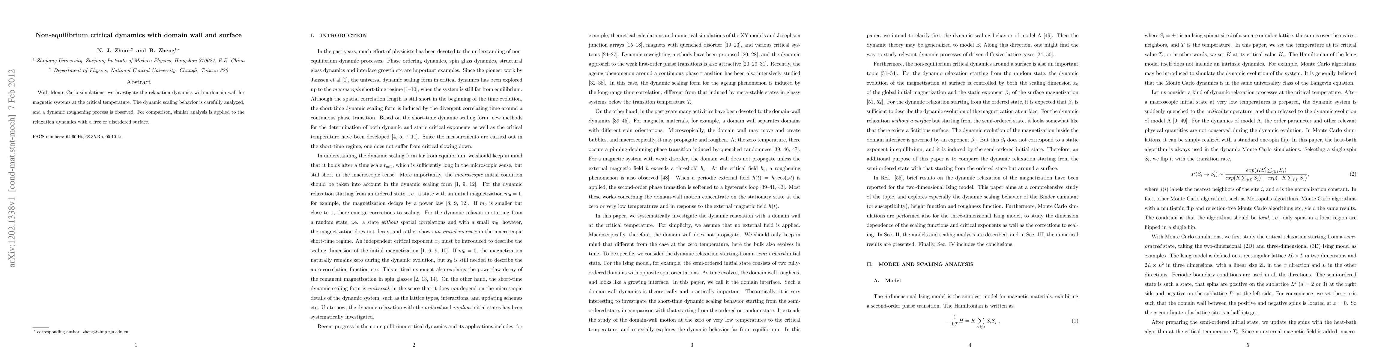 This study uses Monte Carlo simulations to explore the relaxation dynamics of magnetic systems near critical temperature, focusing on the behavior of domain walls and comparing it to free or disordered surfaces, revealing dynamic scaling behavior and a roughening process.