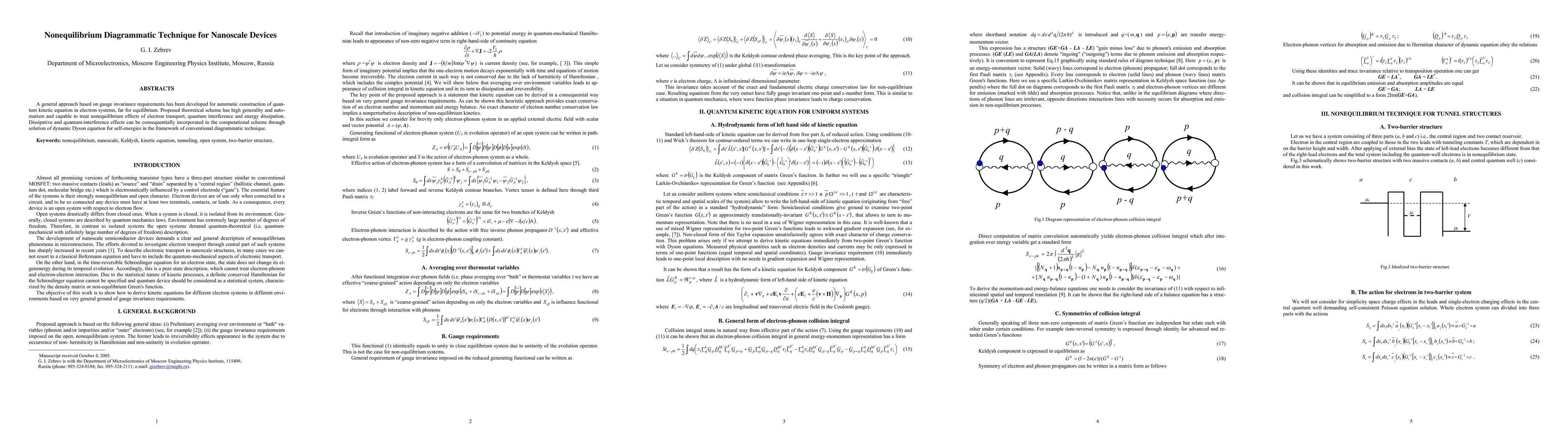 A general approach based on gauge invariance requirements has been developed for automatic construction of quantum kinetic equation in electron systems, far for equilibrium. Proposed theoretical scheme has high generality and automatism and capable to treat nonequilibrium effects of electron transport, quantum interference and energy dissipation. Dissipative and quantum-interference effects can be consequentially incorporated in the computational scheme through solution of dynamic Dyson equation for self-energies in the framework of the Keldysh diagrammatic technique.
