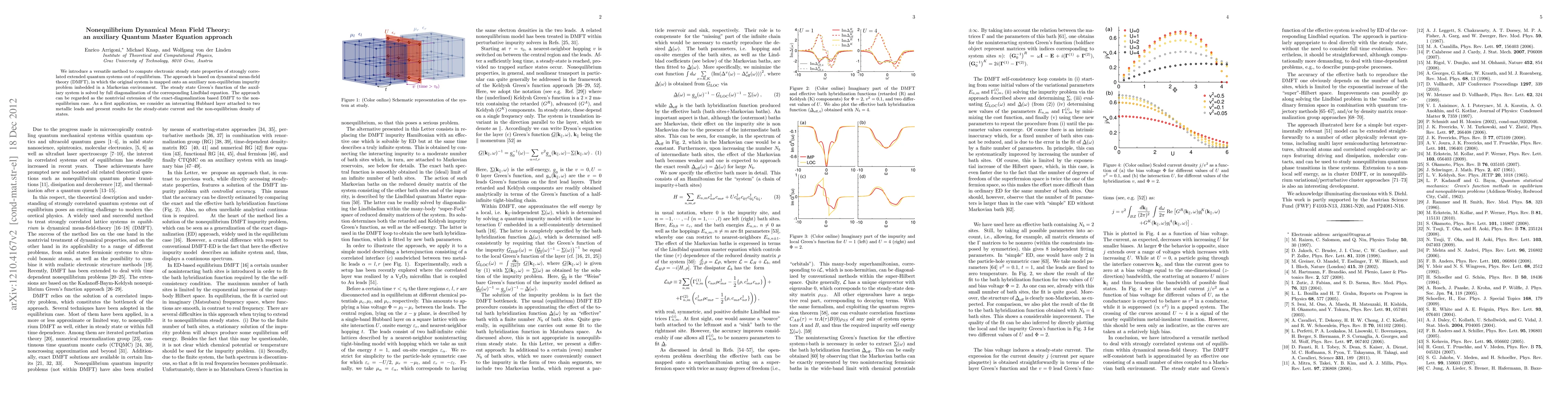This paper proposes a novel method to calculate steady-state properties of nonequilibrium strongly correlated quantum systems using a nonequilibrium Dynamical Mean-Field Theory (DMFT) approach. The method maps the system onto an auxiliary impurity problem and solves its steady state Green's function via the Lindblad equation, extending DMFT to non-equilibrium scenarios. Initial results focus on an interacting Hubbard layer connected to metallic leads.