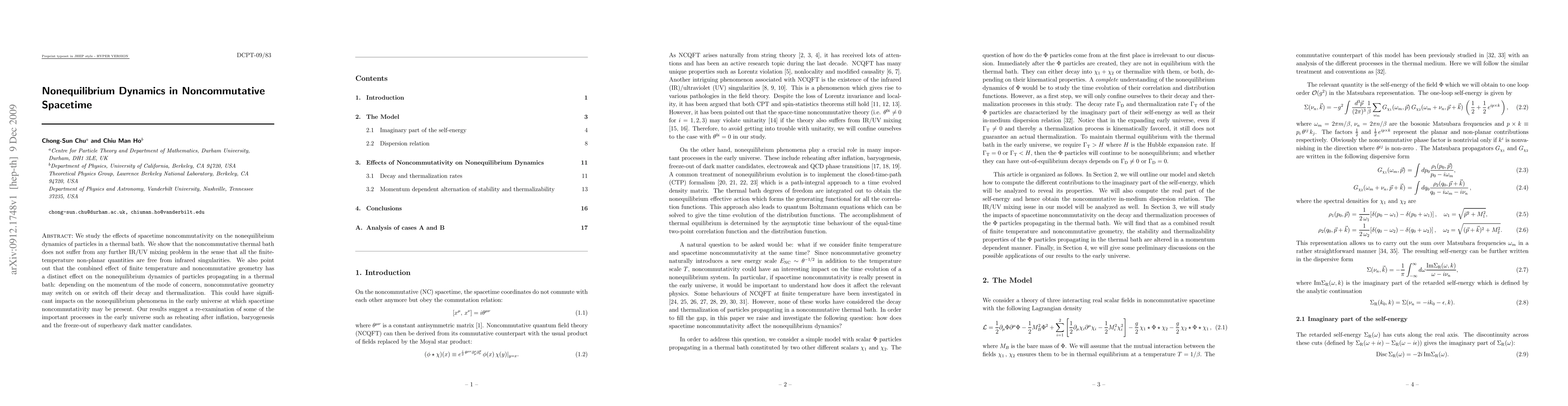 This paper investigates how spacetime noncommutativity influences the nonequilibrium dynamics of particles in a thermal bath, demonstrating that it avoids infrared/ultraviolet mixing issues. It finds that noncommutative geometry can alter the decay and thermalization rates of particles in a momentum-dependent manner, potentially impacting early universe processes like reheating, baryogenesis, and dark matter freeze-out.