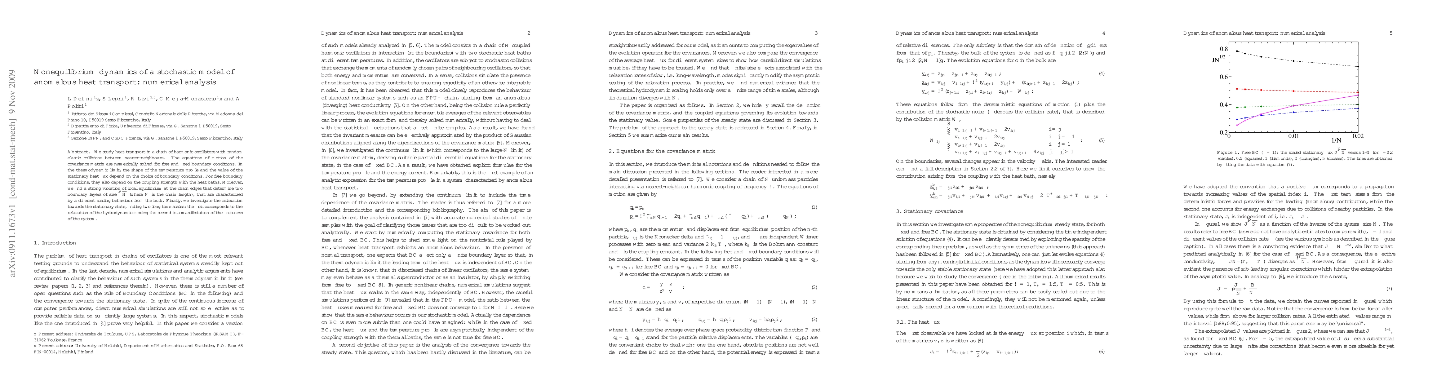 We study heat transport in a chain of harmonic oscillators with random elastic collisions between nearest-neighbours. The equations of motion of the covariance matrix are numerically solved for free and fixed boundary conditions. In the thermodynamic limit, the shape of the temperature profile and the value of the stationary heat flux depend on the choice of boundary conditions. For free boundary conditions, they also depend on the coupling strength with the heat baths. Moreover, we find a strong violation of local equilibrium at the chain edges that determine two boundary layers of size $\sqrt{N}$ (where $N$ is the chain length), that are characterized by a different scaling behaviour from the bulk. Finally, we investigate the relaxation towards the stationary state, finding two long time scales: the first corresponds to the relaxation of the hydrodynamic modes; the second is a manifestation of the finiteness of the system.