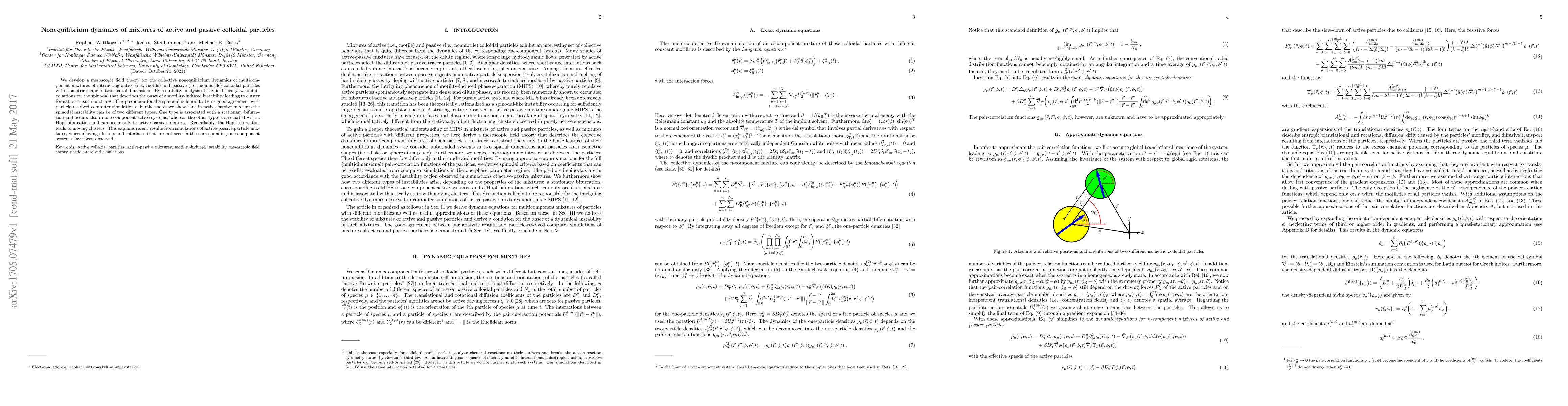 Researchers developed a new field theory to study mixtures of active and passive colloidal particles, finding that these mixtures can exhibit unique spinodal instabilities leading to cluster formation, with one type causing stationary clusters and another causing moving clusters.