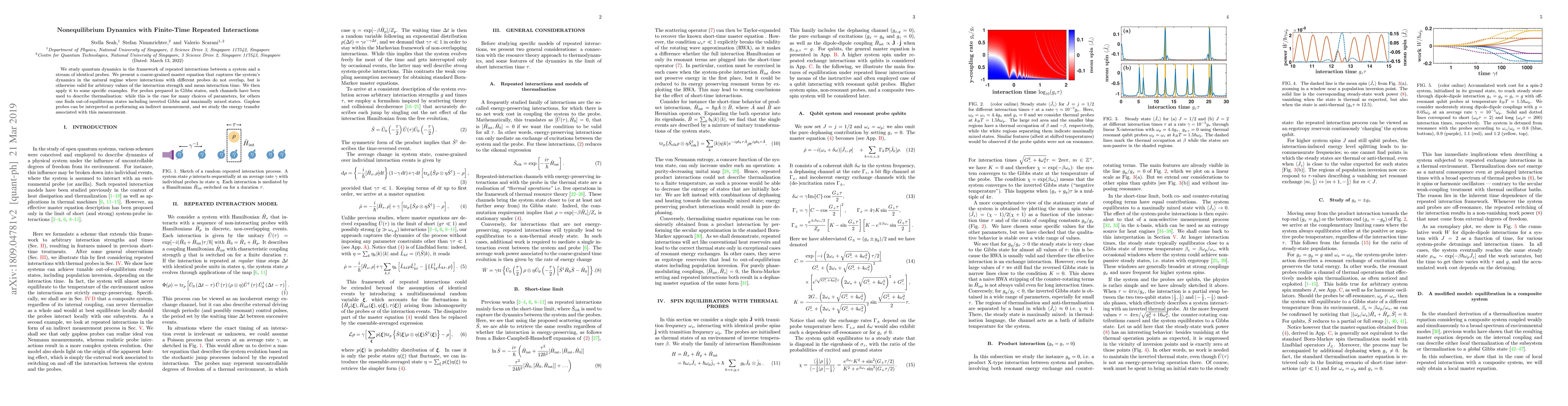 This paper develops a coarse-grained master equation for quantum dynamics in nonequilibrium systems undergoing repeated interactions with probes. It reveals that while some parameters lead to thermalization, others result in out-of-equilibrium states, including inverted Gibbs and maximally mixed states, and explores energy transfer in gapless probes.