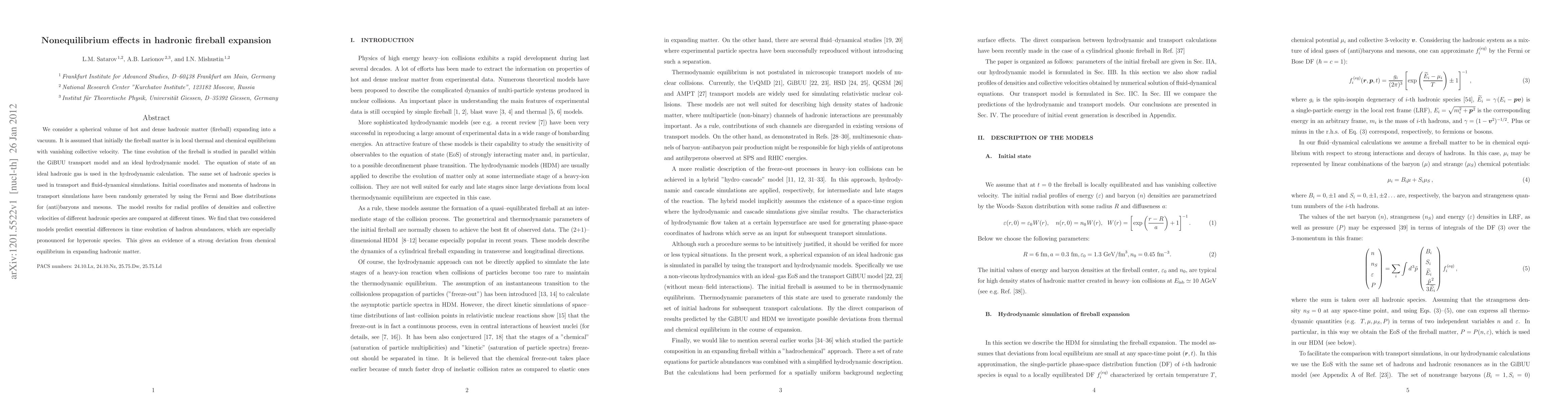 This study compares the time evolution of a spherical hadronic fireball using both GiBUU transport model and ideal hydrodynamics, revealing significant differences in the predicted abundances of hadron species, particularly hyperons, indicating strong deviations from chemical equilibrium during expansion.