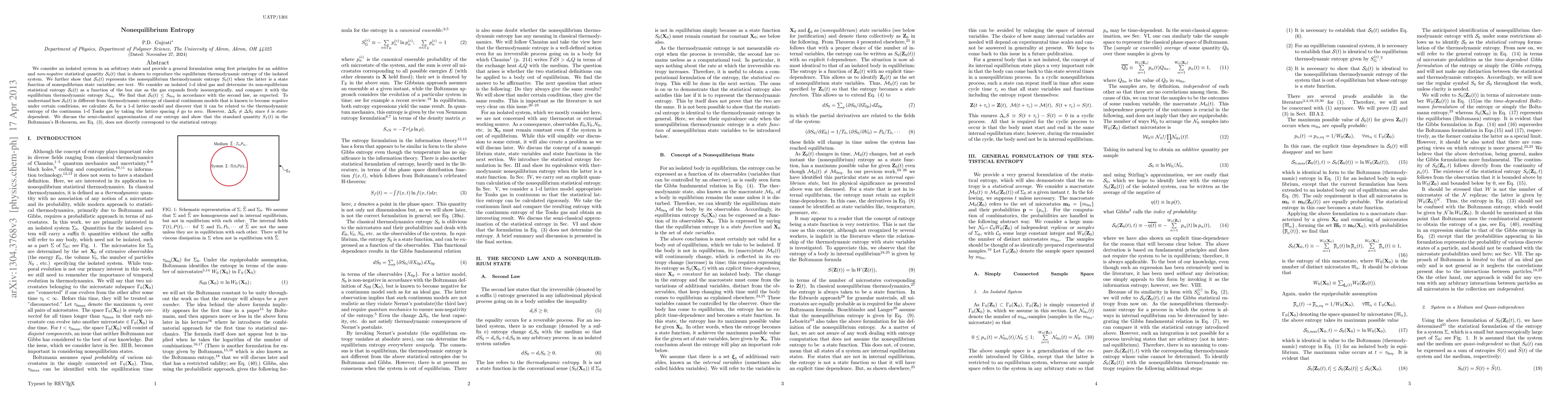 This paper introduces a general formulation for nonequilibrium entropy in an isolated system, showing it reproduces equilibrium thermodynamic entropy under certain conditions. It also compares the statistical entropy of an expanding ideal gas with its thermodynamic counterpart.
