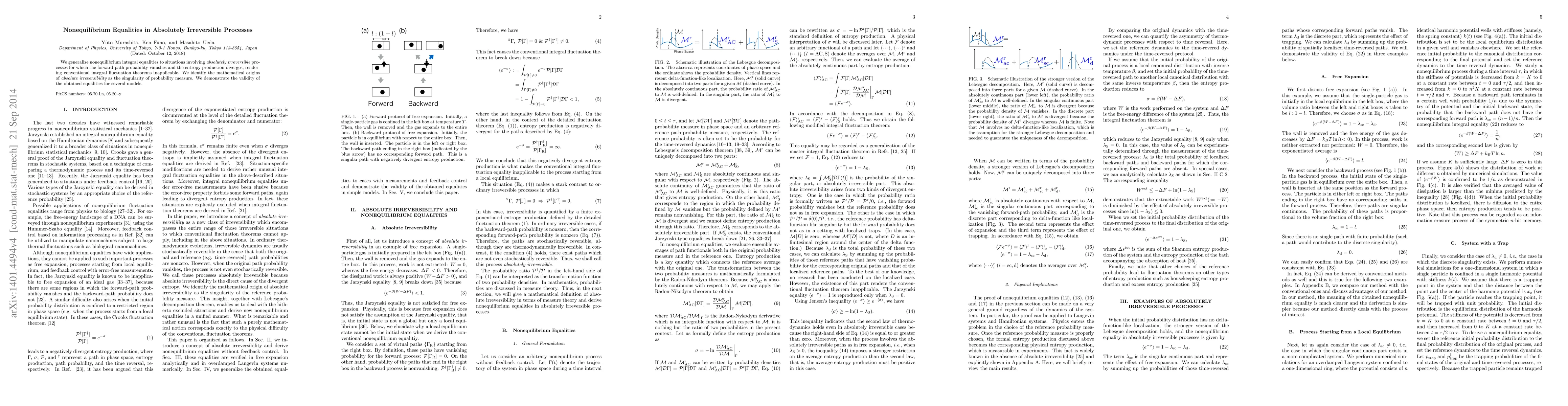 This paper generalizes nonequilibrium integral equalities to absolutely irreversible processes, identifying the singularity of probability measure as the origin of absolute irreversibility. The authors validate their new equalities through several models, extending applicability beyond conventional fluctuation theorems.