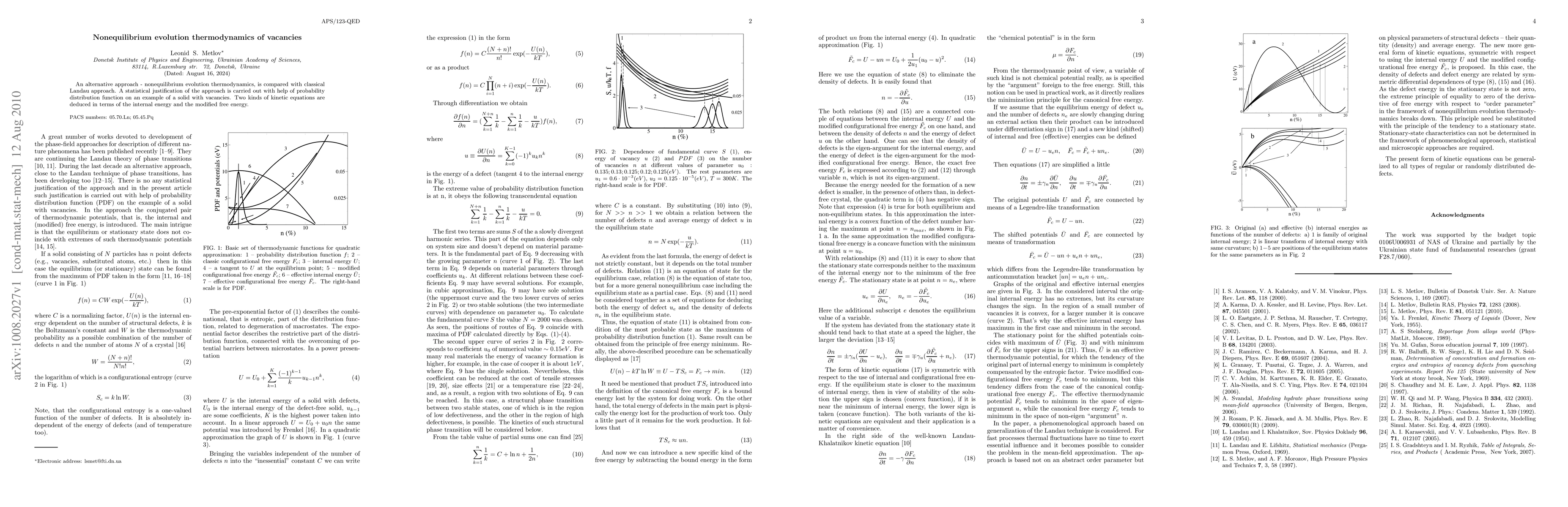 This paper explores nonequilibrium evolution thermodynamics as an alternative to the classical Landau approach for understanding vacancy dynamics in solids. It provides statistical justification using a probability distribution function and derives two kinetic equations based on internal energy and modified free energy.