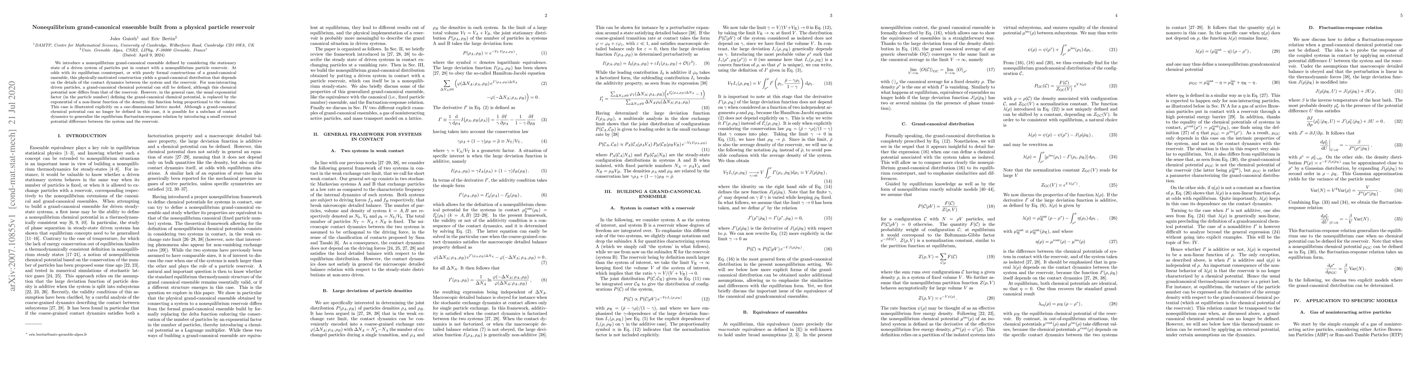 This paper introduces a nonequilibrium grand-canonical ensemble based on a driven particle system in contact with a nonequilibrium particle reservoir. Unlike traditional grand-canonical ensembles, this construction depends on the dynamics of the interaction, leading to a non-linear grand-canonical chemical potential in general cases.