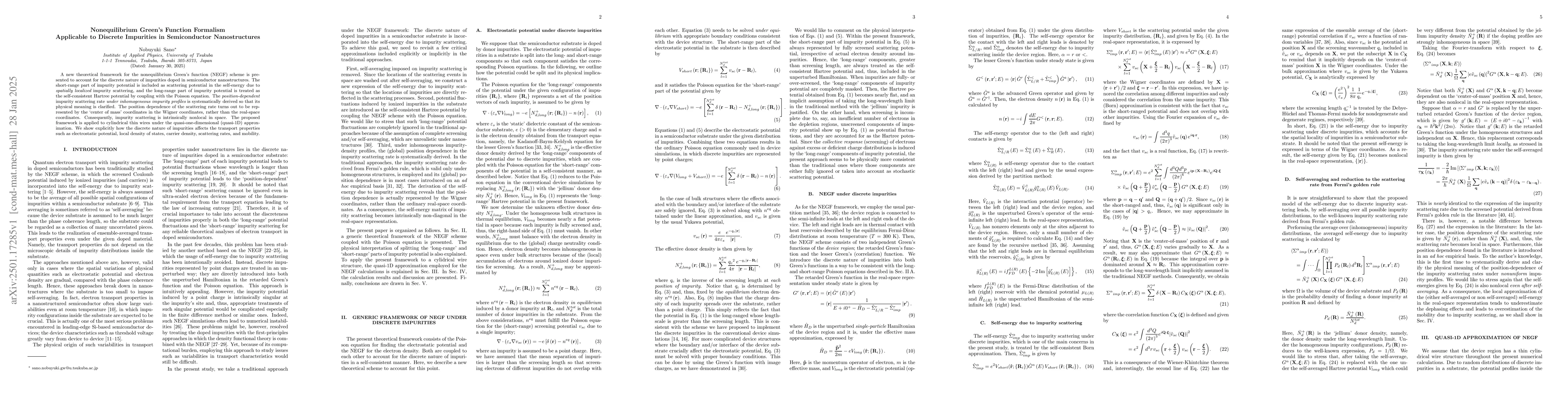 This paper introduces a novel theoretical framework for the nonequilibrium Green's function scheme, addressing discrete impurities in semiconductor nanostructures. It shows that impurity scattering is inherently nonlocal, affecting transport properties through position-dependent scattering rates represented in Wigner coordinates.