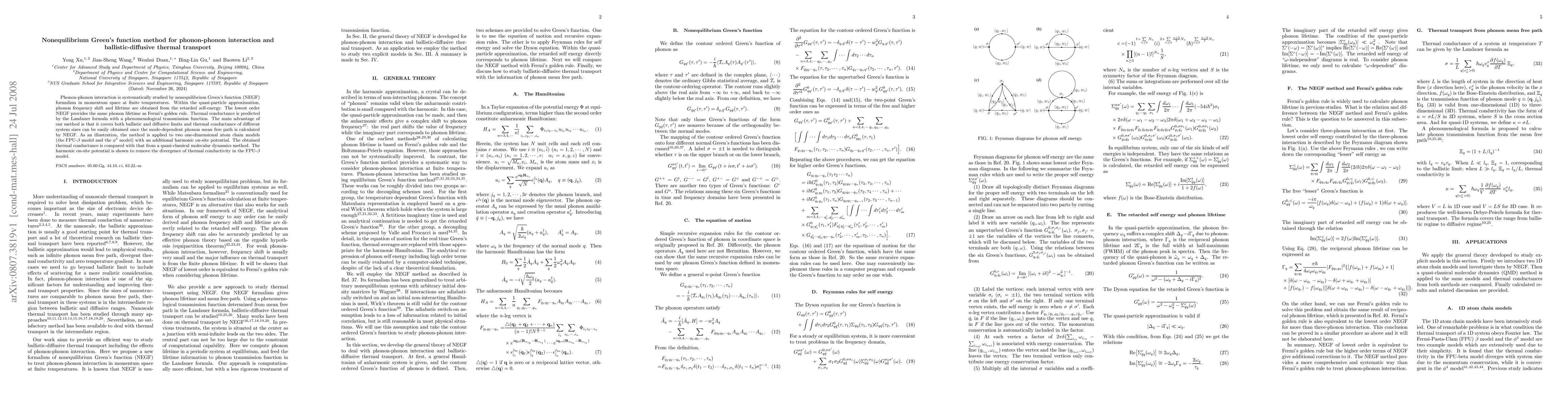 This paper employs the nonequilibrium Green's function method to study phonon-phonon interactions and thermal transport, providing a unified approach for both ballistic and diffusive thermal conductance. The method is demonstrated on one-dimensional atom chain models, showing improved thermal conductivity predictions compared to quasi-classical methods.