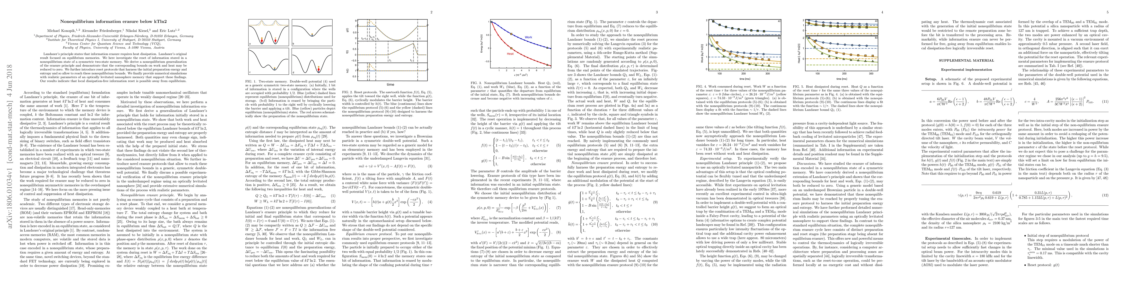 The paper presents a nonequilibrium extension of Landauer's erasure principle and introduces reset protocols that leverage initial preparation energy and entropy to minimize work and heat dissipation during information erasure.
