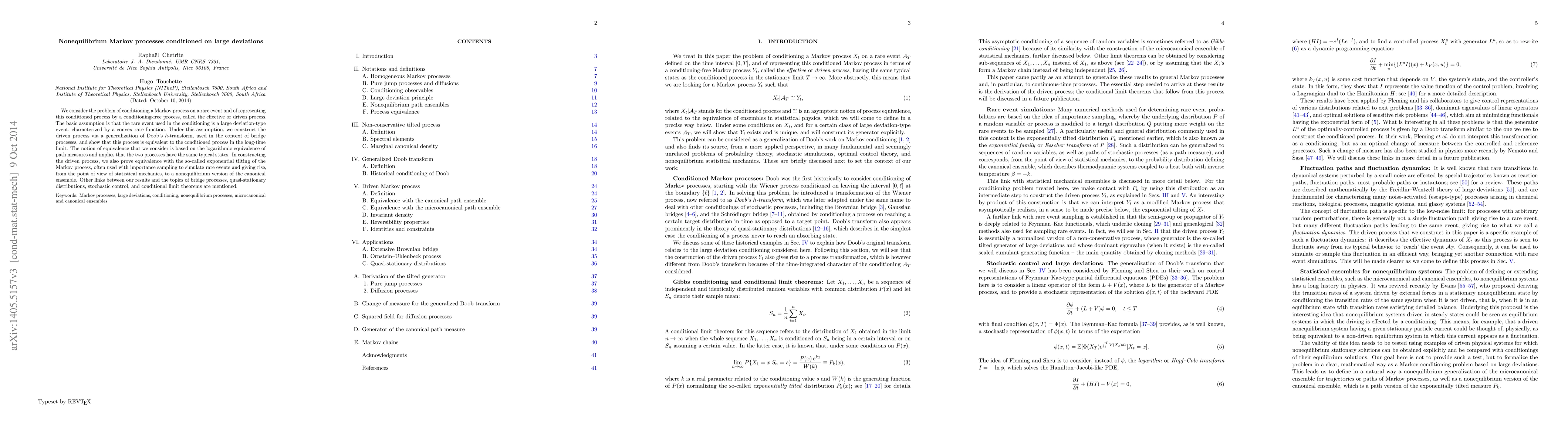 The paper introduces a generalized Doob transform to construct a driven process equivalent to a conditioned Markov process in the long-time limit, offering a novel approach to studying nonequilibrium systems.