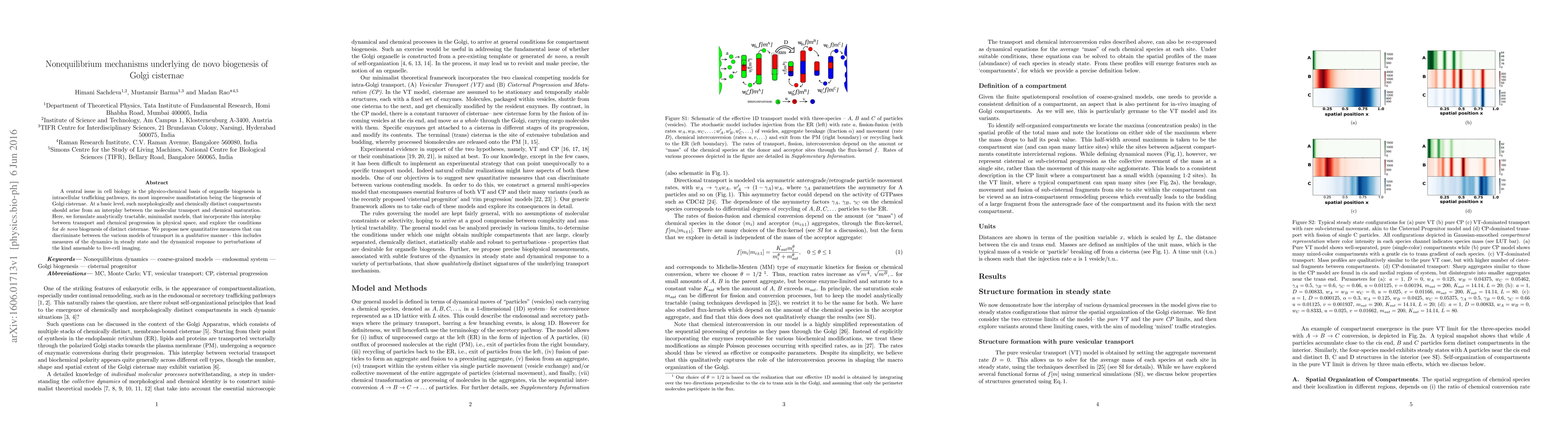 A central issue in cell biology is the physico-chemical basis of organelle biogenesis in intracellular trafficking pathways, its most impressive manifestation being the biogenesis of Golgi cisternae. At a basic level, such morphologically and chemically distinct compartments should arise from an interplay between the molecular transport and chemical maturation. Here, we formulate analytically tractable, minimalist models, that incorporate this interplay between transport and chemical progression in physical space, and explore the conditions for de novo biogenesis of distinct cisternae. We propose new quantitative measures that can discriminate between the various models of transport in a qualitative manner- this includes measures of the dynamics in steady state and the dynamical response to perturbations of the kind amenable to live-cell imaging.