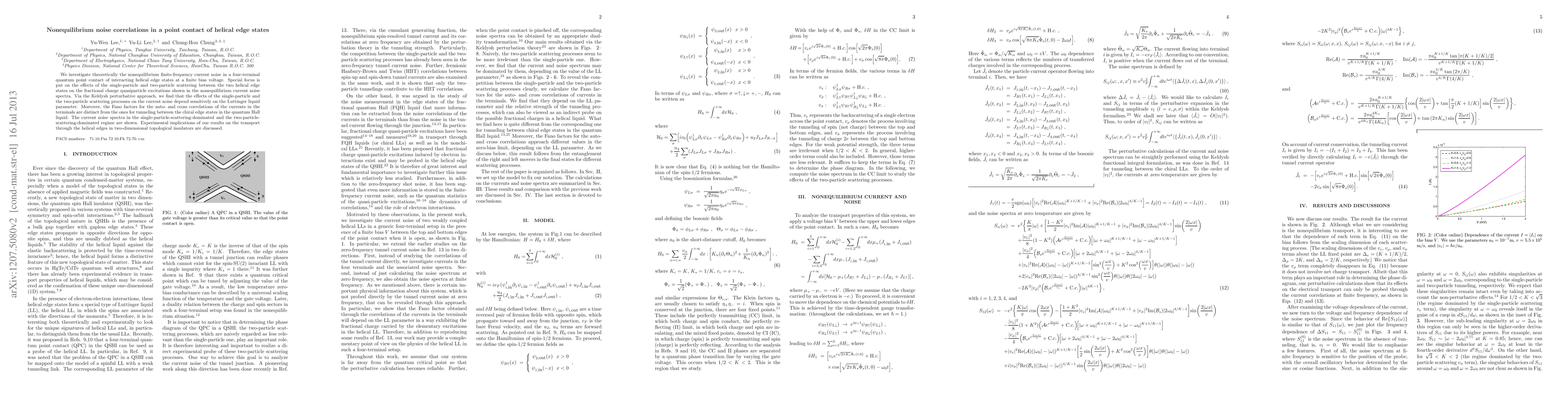 This paper theoretically explores the nonequilibrium current noise in a quantum point contact of interacting helical edge states, focusing on single-particle and two-particle scattering effects. The study reveals distinct Fano factors for current correlations and highlights regime-dependent noise spectra, with implications for transport in topological insulators.