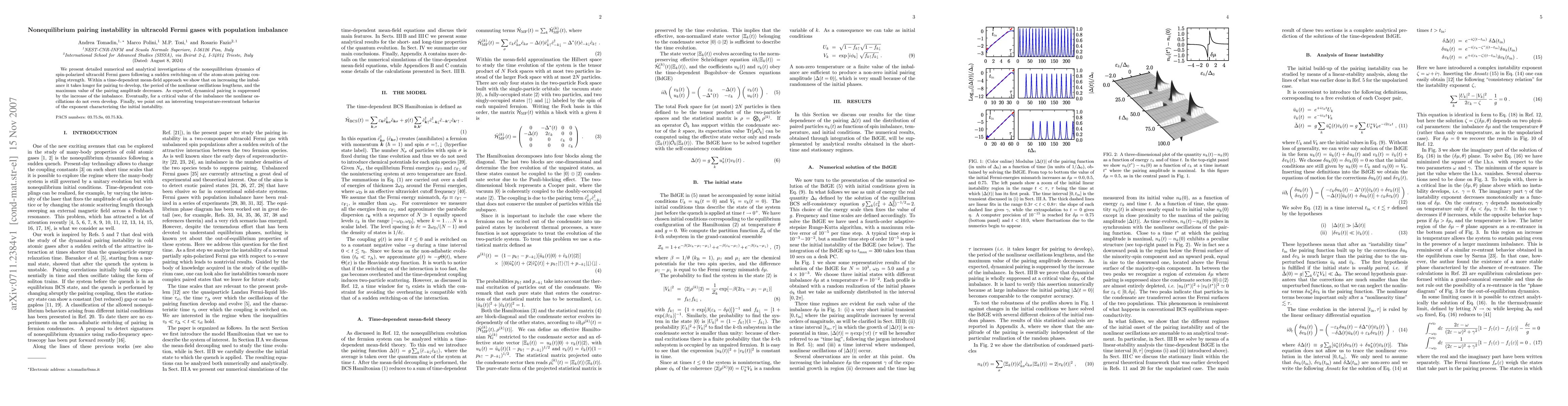 This paper investigates the nonequilibrium dynamics of spin-polarized ultracold Fermi gases with population imbalance, revealing that increased imbalance delays pairing development and suppresses dynamical pairing. It also highlights a temperature-reentrant behavior in the exponent characterizing the initial instability.