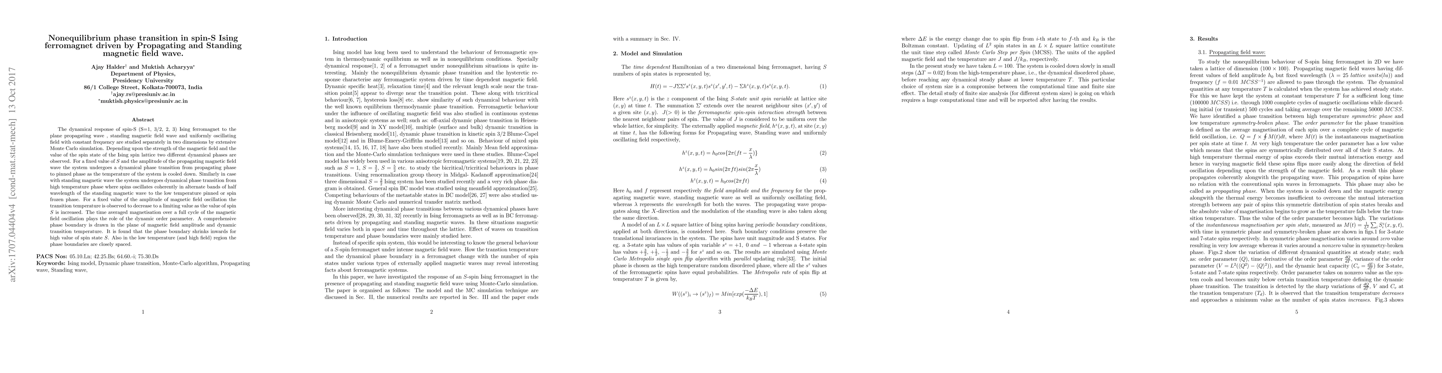 This study investigates the dynamical phase transitions in spin-S Ising ferromagnets under various magnetic field waves using Monte Carlo simulations. The system exhibits different dynamical phases depending on the magnetic field strength and spin state, with transitions observed from propagating to pinned phases under cooling.