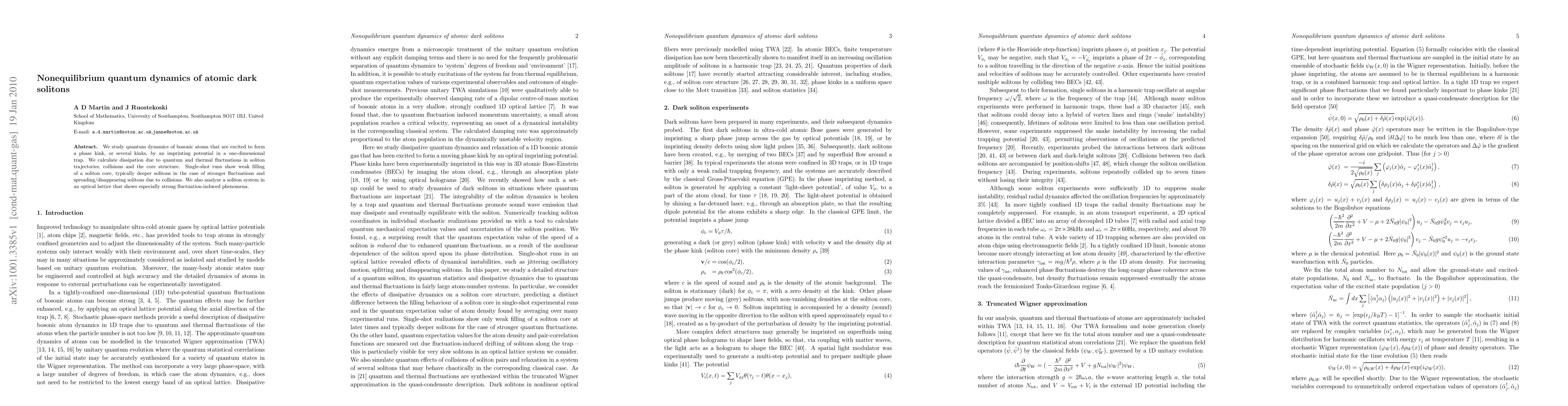 We study quantum dynamics of bosonic atoms that are excited to form a phase kink, or several kinks, by an imprinting potential in a one-dimensional trap. We calculate dissipation due to quantum and thermal fluctuations in soliton trajectories, collisions and the core structure. Single-shot runs show weak filling of a soliton core, typically deeper solitons in the case of stronger fluctuations and spreading/disappearing solitons due to collisions. We also analyze a soliton system in an optical lattice that shows especially strong fluctuation-induced phenomena.