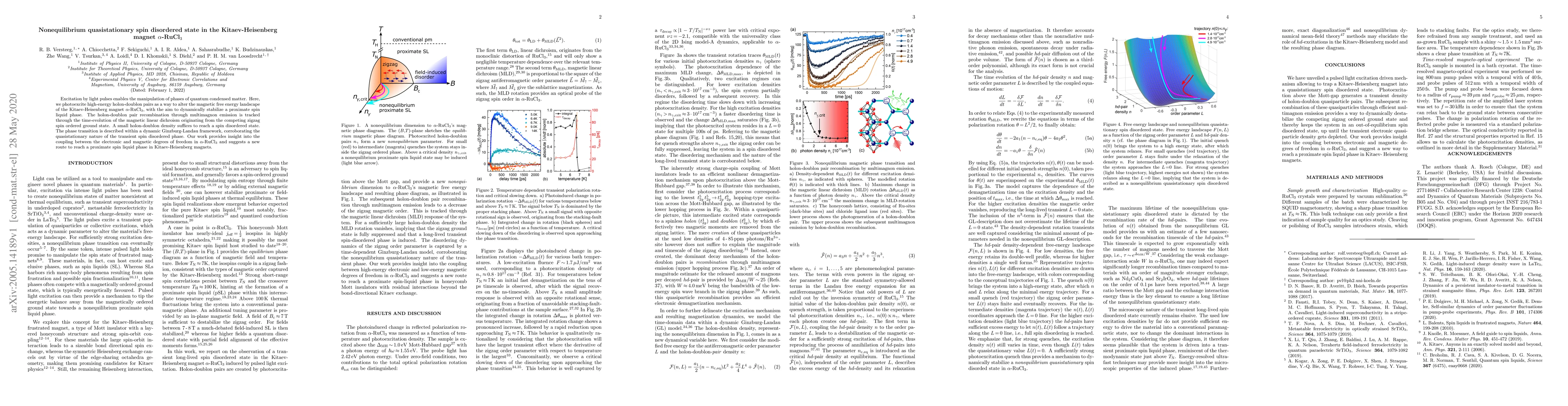 This study demonstrates how light pulses can manipulate the magnetic phases in the Kitaev-Heisenberg magnet $\alpha$-RuCl$_3$ by photoexciting holon-doublon pairs, leading to a transient spin disordered state. The dynamic Ginzburg-Landau framework supports the quasistationary nature of this state, offering insights into the coupling between electronic and magnetic degrees of freedom.