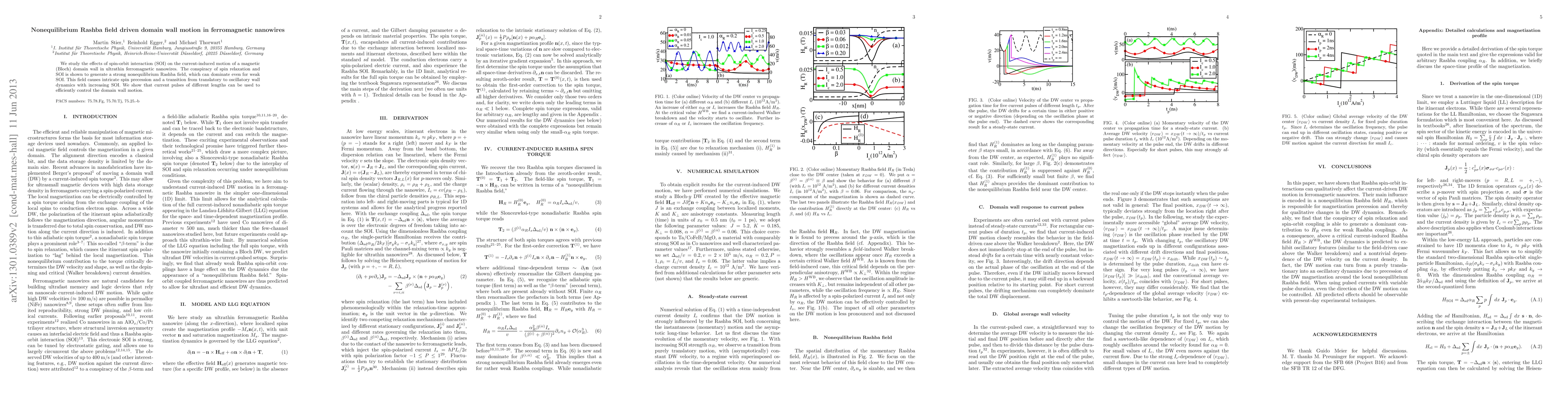 This paper investigates the impact of spin-orbit interaction on domain wall motion in ferromagnetic nanowires, demonstrating that it generates a strong nonequilibrium Rashba field leading to complex spin precession and oscillatory dynamics, controllable via current pulses.
