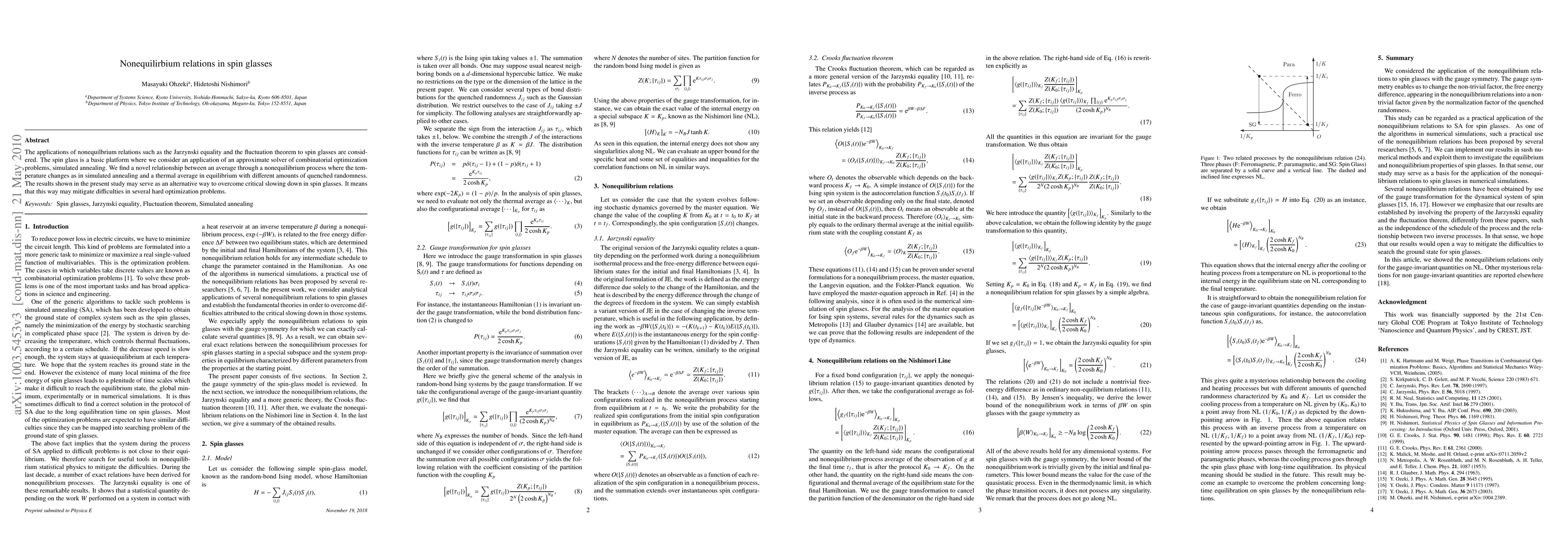 This paper explores the application of nonequilibrium relations, like the Jarzynski equality and fluctuation theorem, to spin glasses and simulated annealing. It uncovers a novel link between nonequilibrium temperature changes and thermal averages under different quenched randomness, potentially offering a new method to mitigate critical slowing down in spin glasses and optimize hard combinatorial problems.
