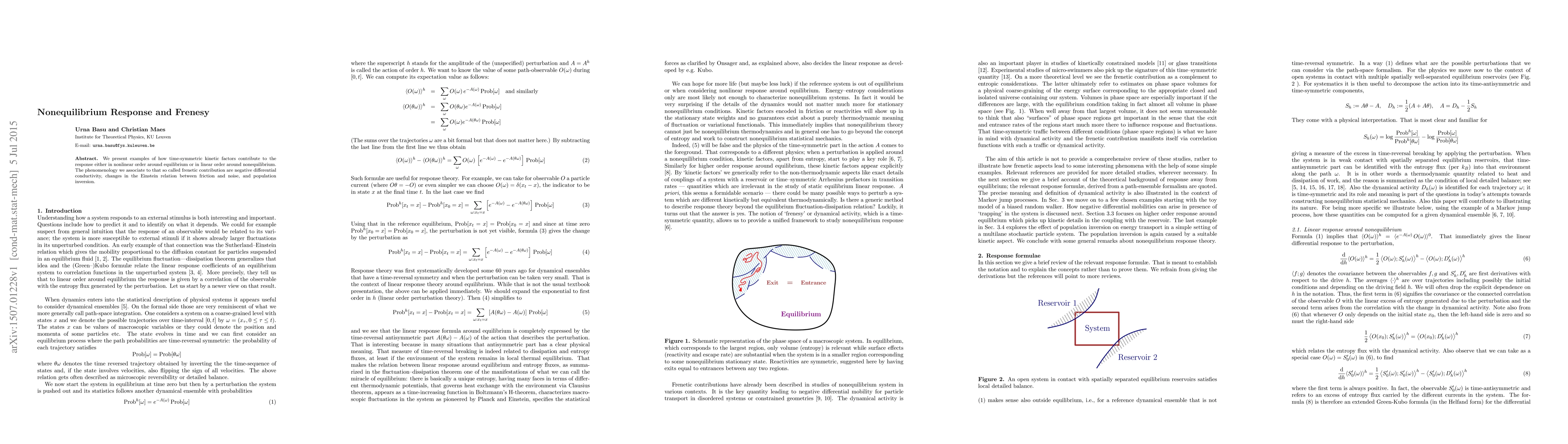 We present examples of how time-symmetric kinetic factors contribute to the response either in nonlinear order around equilibrium or in linear order around nonequilibrium. The phenomenology we associate to that so called frenetic contribution are negative differential conductivity, changes in the Einstein relation between friction and noise, and population inversion.