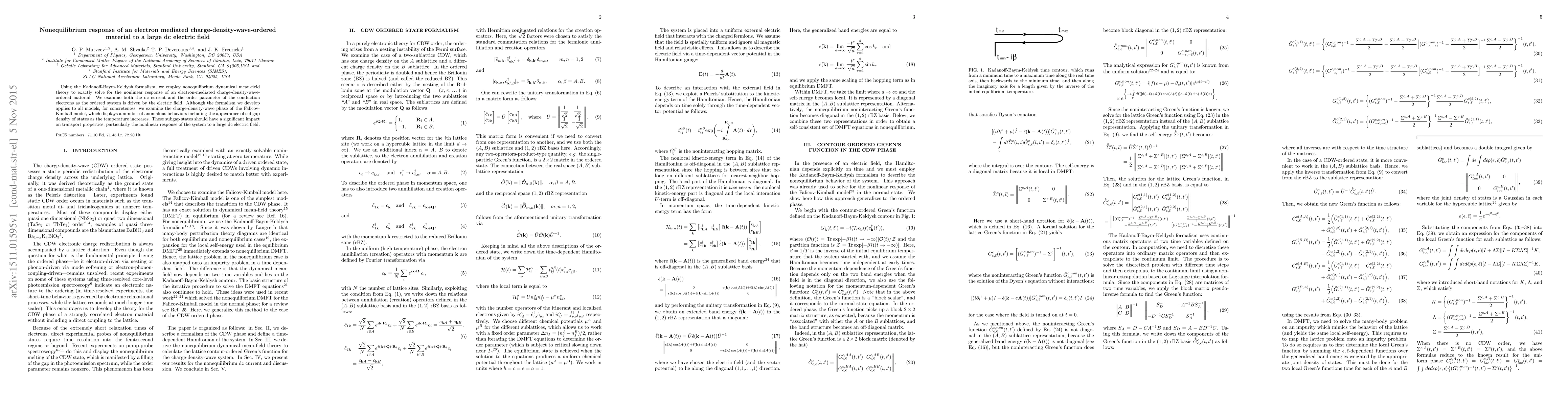 Using the Kadanoff-Baym-Keldysh formalism, we employ nonequilibrium dynamical mean-field theory to exactly solve for the nonlinear response of an electron-mediated charge-density-wave-ordered material. We examine both the dc current and the order parameter of the conduction electrons as the ordered system is driven by the electric field. Although the formalism we develop applies to all models, for concreteness, we examine the charge-density-wave phase of the Falicov-Kimball model, which displays a number of anomalous behaviors including the appearance of subgap density of states as the temperature increases. These subgap states should have a significant impact on transport properties, particularly the nonlinear response of the system to a large dc electric field.