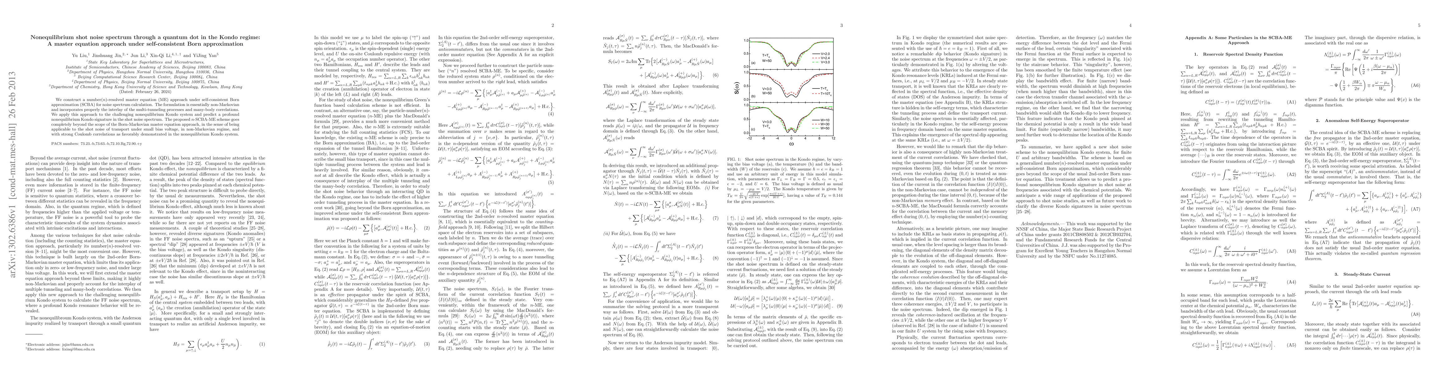 We construct a number($n$)-resolved master equation (ME) approach under self-consistent Born approximation (SCBA) for noise spectrum calculation. The formulation is essentially non-Markovian and incorporates properly the interlay of the multi-tunneling processes and many-body correlations. We apply this approach to the challenging nonequilibrium Kondo system and predict a profound nonequilibrium Kondo signature in the shot noise spectrum. The proposed $n$-SCBA-ME scheme goes completely beyond the scope of the Born-Markovian master equation approach, in the sense of being applicable to the shot noise of transport under small bias voltage, in non-Markovian regime, and with strong Coulomb correlations as favorably demonstrated in the nonequilibrium Kondo system.