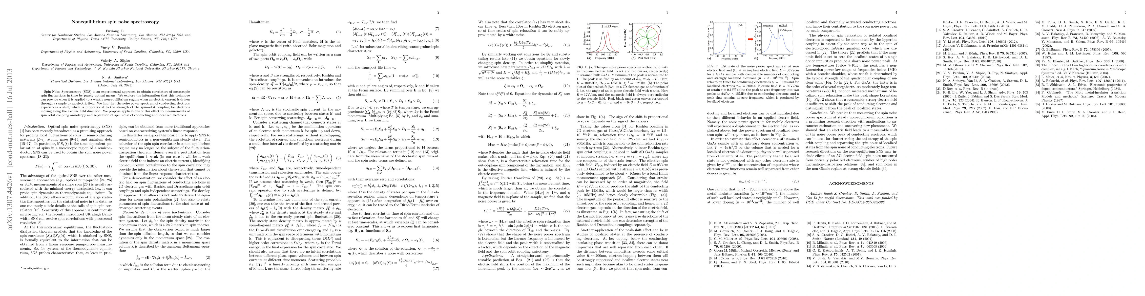 This paper investigates Spin Noise Spectroscopy (SNS) in a weakly non-equilibrium regime, revealing a shift in the noise power spectrum proportional to spin-orbit coupling strength, with potential applications in measuring spin-orbit coupling anisotropy and distinguishing spin noise from conducting and localized electrons.