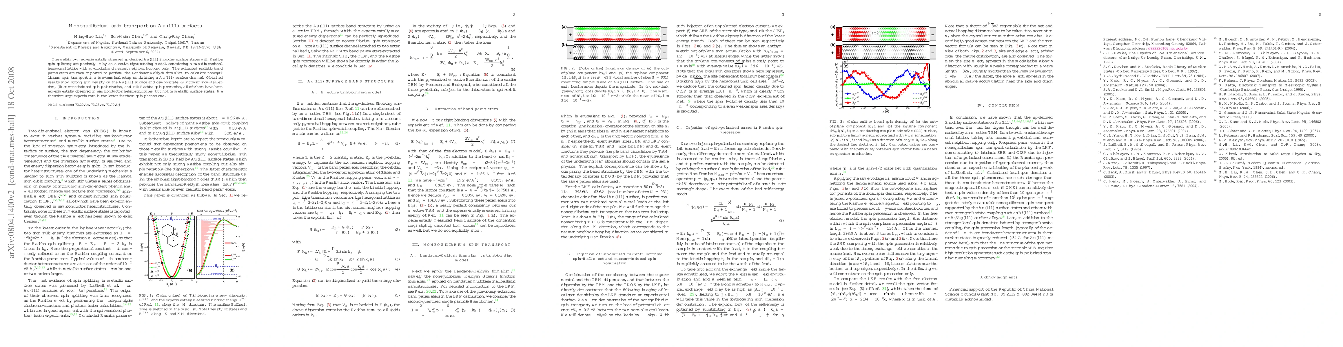 This study fits Au(111) surface states with an effective tight-binding model and employs the Landauer-Keldysh formalism to investigate nonequilibrium spin transport. Results reveal strong spin density, intrinsic spin-Hall effect, current-induced spin polarization, and Rashba spin precession on Au(111) surfaces, phenomena previously unseen in metallic surface states.