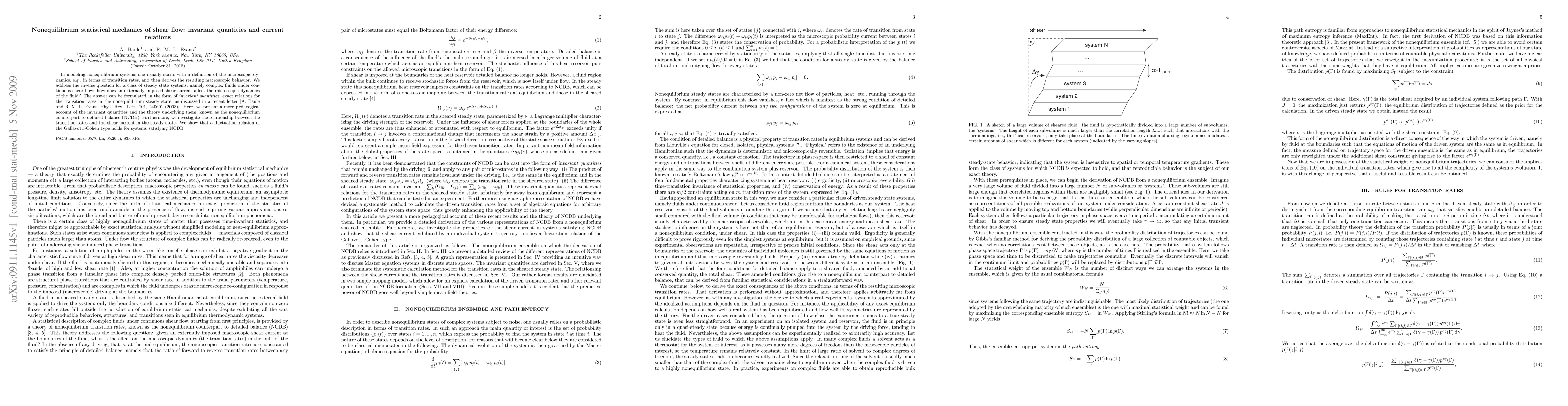 In modeling nonequilibrium systems one usually starts with a definition of the microscopic dynamics, e.g., in terms of transition rates, and then derives the resulting macroscopic behavior. We address the inverse question for a class of steady state systems, namely complex fluids under continuous shear flow: how does an externally imposed shear current affect the microscopic dynamics of the fluid? The answer can be formulated in the form of invariant quantities, exact relations for the transition rates in the nonequilibrium steady state, as discussed in a recent letter [A. Baule and R. M. L. Evans, Phys. Rev. Lett. 101, 240601 (2008)]. Here, we present a more pedagogical account of the invariant quantities and the theory underlying them, known as the nonequilibrium counterpart to detailed balance (NCDB). Furthermore, we investigate the relationship between the transition rates and the shear current in the steady state. We show that a fluctuation relation of the Gallavotti-Cohen type holds for systems satisfying NCDB.
