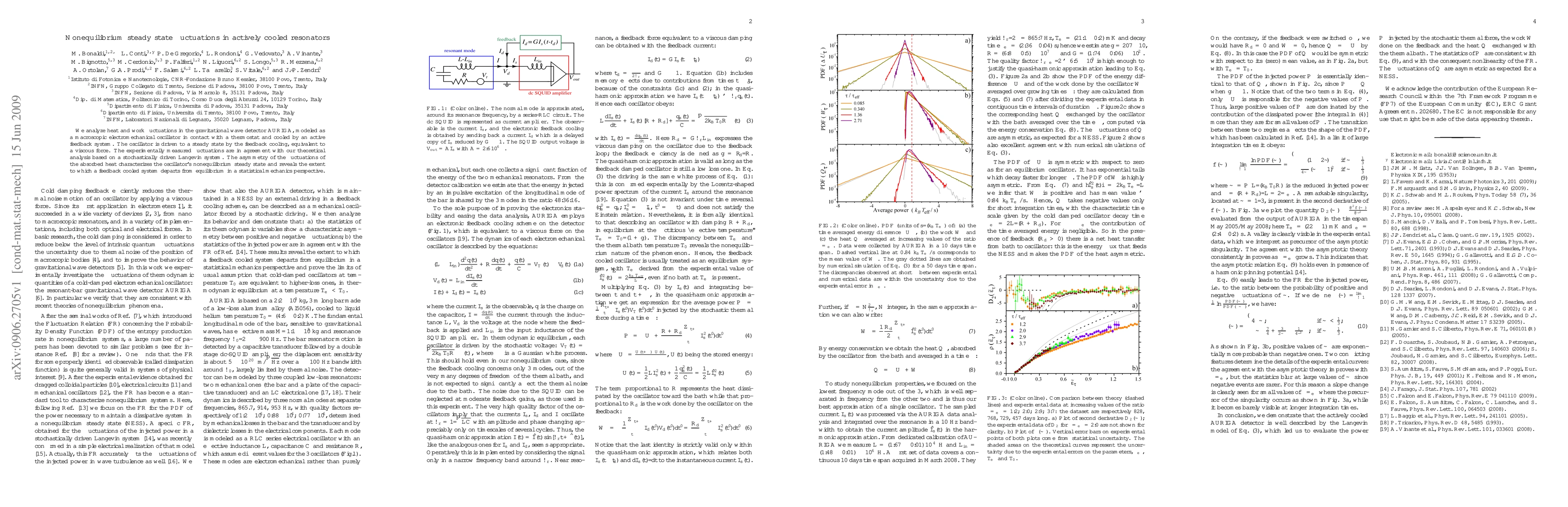 This study investigates heat and work fluctuations in a gravitational wave detector modeled as an actively cooled electromechanical oscillator. Theoretical analysis using a stochastically driven Langevin system aligns with experimental measurements, demonstrating the system's asymmetry in absorbed heat fluctuations and its departure from equilibrium.