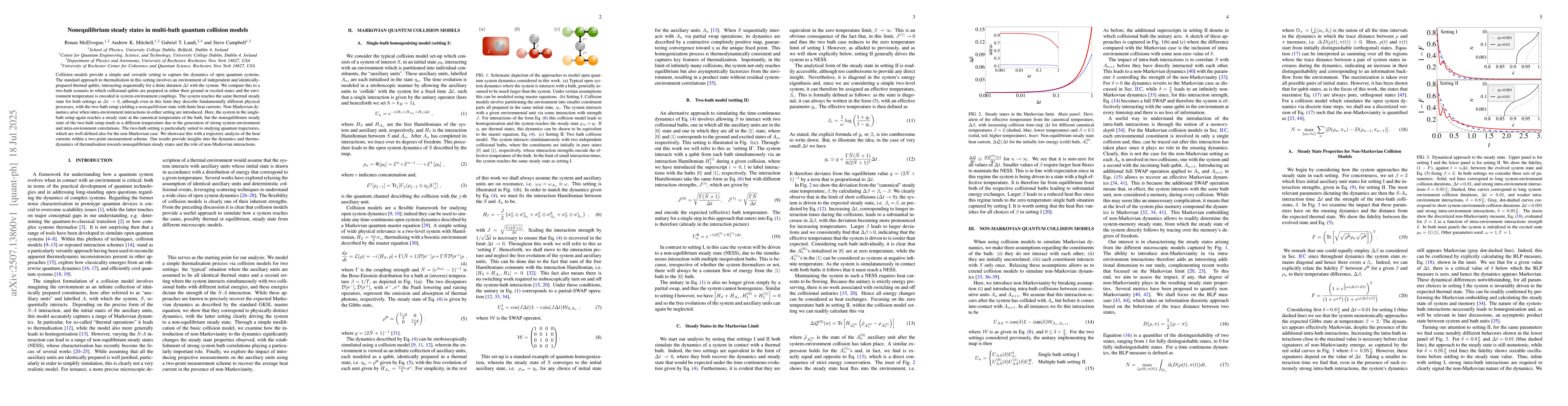 Collision models provide a simple and versatile setting to capture the dynamics of open quantum systems. The standard approach to thermalisition in this setting involves an environment of independent and identically-prepared thermal qubits, interacting sequentially for a finite duration $\Delta t$ with the system. We compare this to a two-bath scenario in which collisional qubits are prepared in either their ground or excited states and the environment temperature is encoded in system-environment couplings. The system reaches the same thermal steady state for both settings as $\Delta t\to 0$, although even in this limit they describe fundamentally different physical processes, with the two-bath setup yielding a nonequilibrium state with finite heat currents. Non-Markovian dynamics arise when intra-environment interactions in either setting are introduced. Here, the system in the single-bath setup again reaches a steady state at the canonical temperature of the bath, but the nonequilibrium steady state of the two-bath setup tends to a different temperature due to the generation of strong system-environment and intra-environment correlations. The two-bath setting is particularly suited to studying quantum trajectories, which are well-defined also for the non-Markovian case. We showcase this with a trajectory analysis of the heat currents within a two-point measurement scheme. Our results provide insights into the dynamics and thermodynamics of thermalisation towards nonequilibrium steady states and the role of non-Markovian interactions.