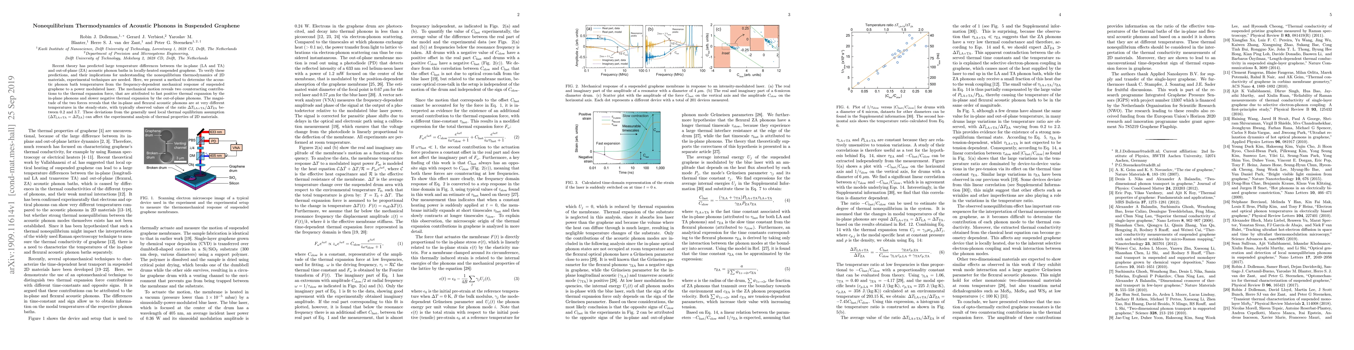 This study experimentally verifies theoretical predictions of large temperature differences between in-plane and out-of-plane acoustic phonon baths in suspended graphene, using a laser modulation technique. The analysis reveals significant deviations from local thermal equilibrium, affecting the interpretation of graphene's thermal properties.