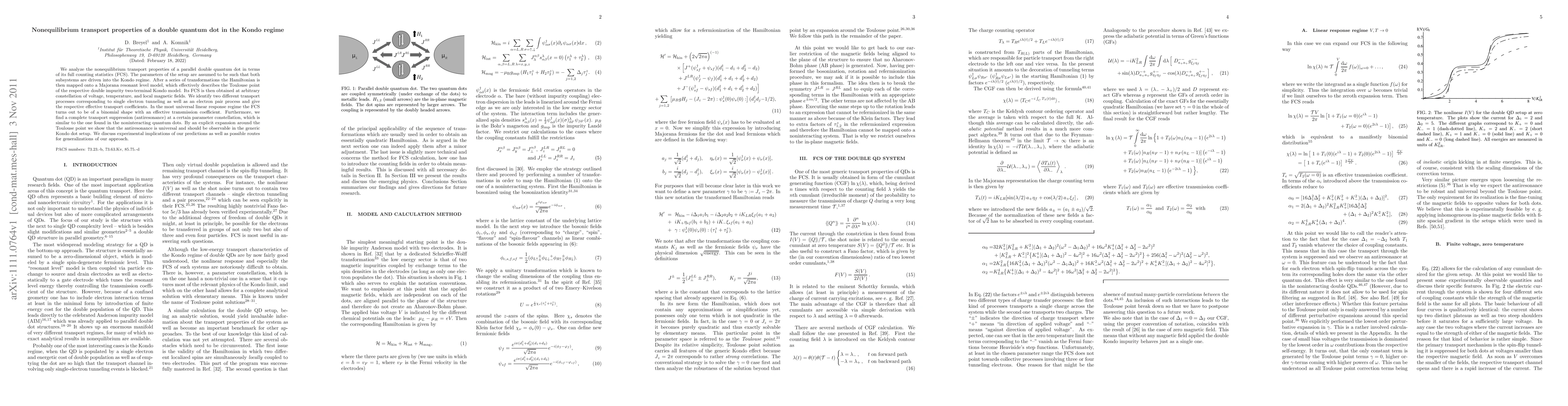 This paper investigates the nonequilibrium transport properties of a double quantum dot in the Kondo regime using full counting statistics. It reveals two transport processes, identifies universal transport suppression (antiresonance) at specific parameters, and discusses potential experimental implications and generalizations.