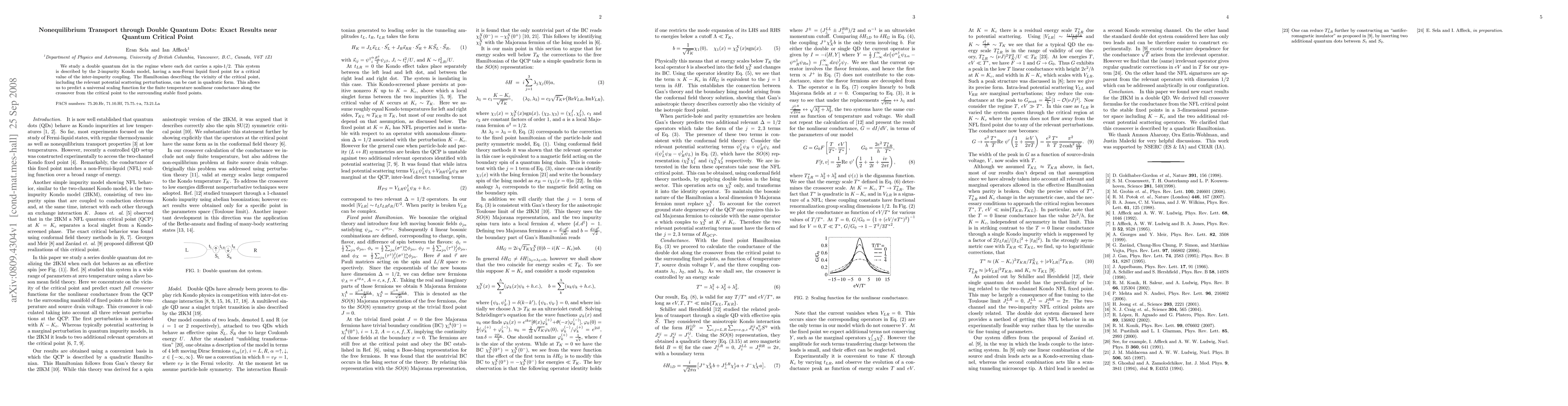 This paper investigates the transport properties of a double quantum dot system near its quantum critical point, described by the 2-impurity Kondo model. The authors derive a universal scaling function for the finite temperature nonlinear conductance, revealing exact results in the vicinity of the critical inter-impurity coupling.
