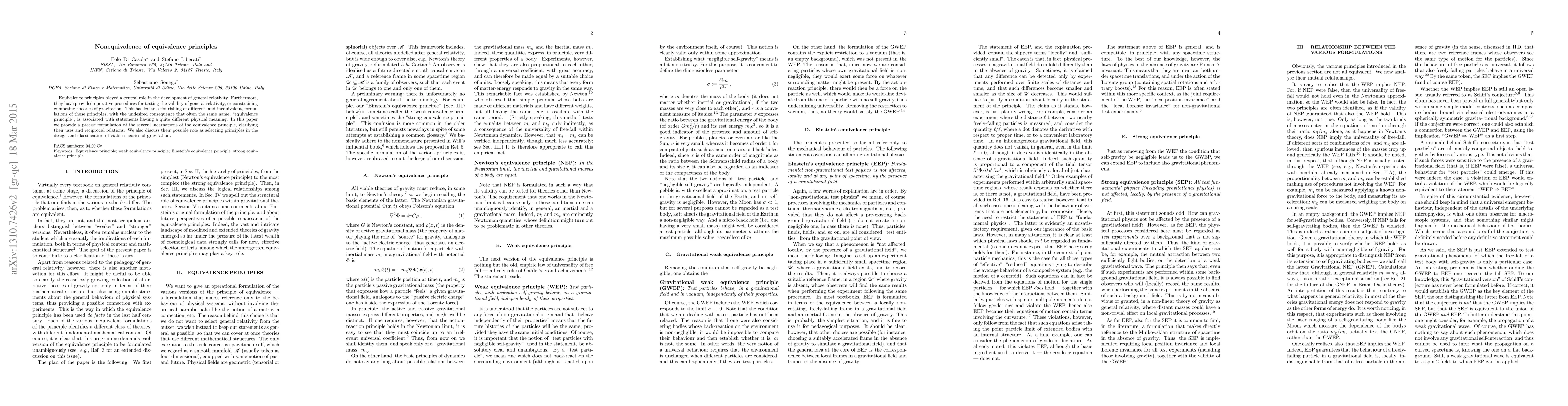 This paper clarifies the various formulations of the equivalence principle, highlighting their distinct physical meanings and roles in testing general relativity and developing competing theories of gravitation. It aims to distinguish these inequivalent principles and discuss their utility in theory classification.