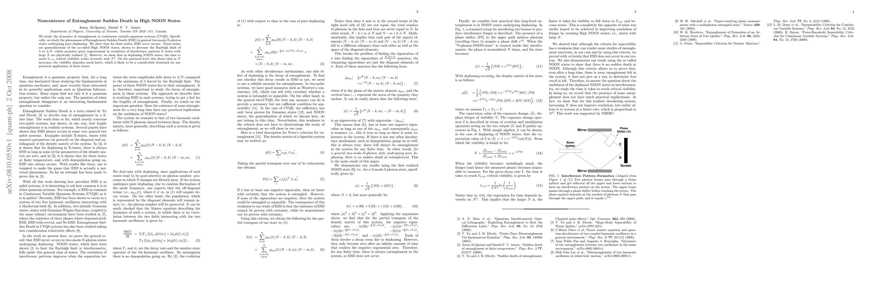 This paper demonstrates that entanglement sudden death does not occur in high NOON states undergoing pure dephasing, despite these states offering significant resolution improvements for interference patterns. However, the visibility degradation scales inversely with N^2 as N increases, posing practical challenges for their application.